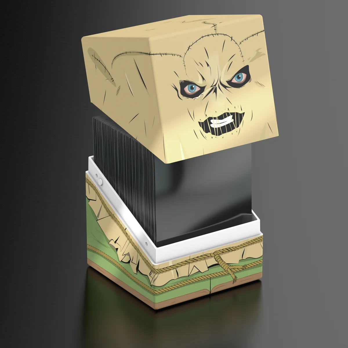 Sammelbare Box zur Aufbewahrung von TCG-Decks, Tabletop-Zubehör und/oder Sammlerstücken. Der Scarecrow Squaroe aus der Batman: Gotham City-Edition bietet als Deck-Box benutzt Platz für bis zu 100 Spielkarten in doppelter Schutzhülle. Squaroes werden aus 78% erneuerbaren Rohstoffen hergestellt und passen perfekt in das separat erhältliche Collectors Case.
