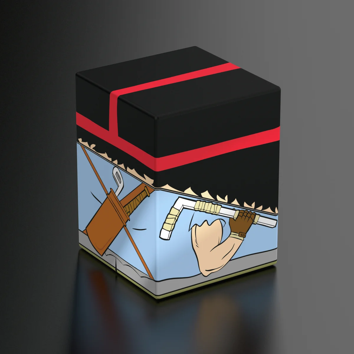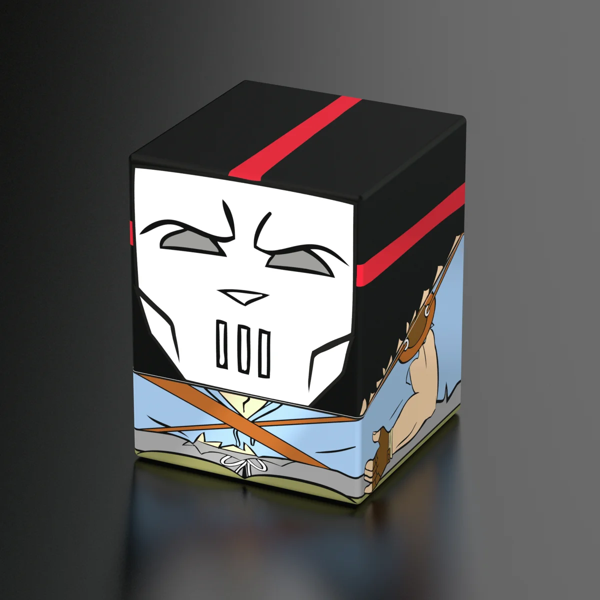Sammelbare Box zur Aufbewahrung von TCG-Decks, Tabletop-Zubehör und/oder Sammlerstücken. Der Casey Jones Squaroe aus der Teenage Mutant Ninja Turtles™-Edition bietet als Deck-Box benutzt Platz für bis zu 100 Spielkarten in doppelter Schutzhülle. Squaroes werden aus 78% erneuerbaren Rohstoffen hergestellt und passen perfekt in das separat erhältliche Collectors Case.
