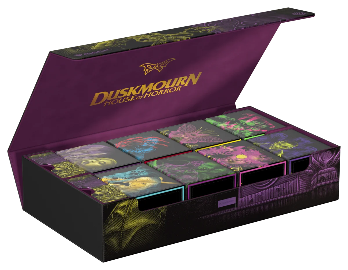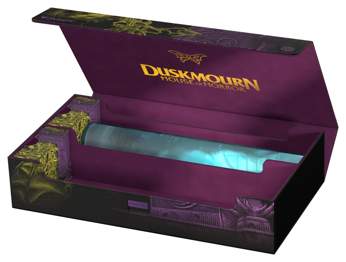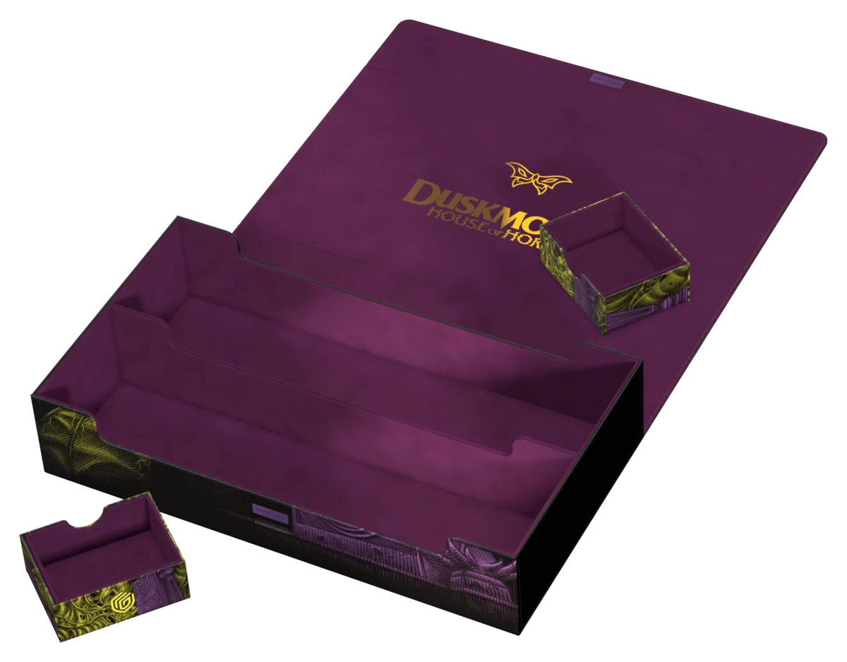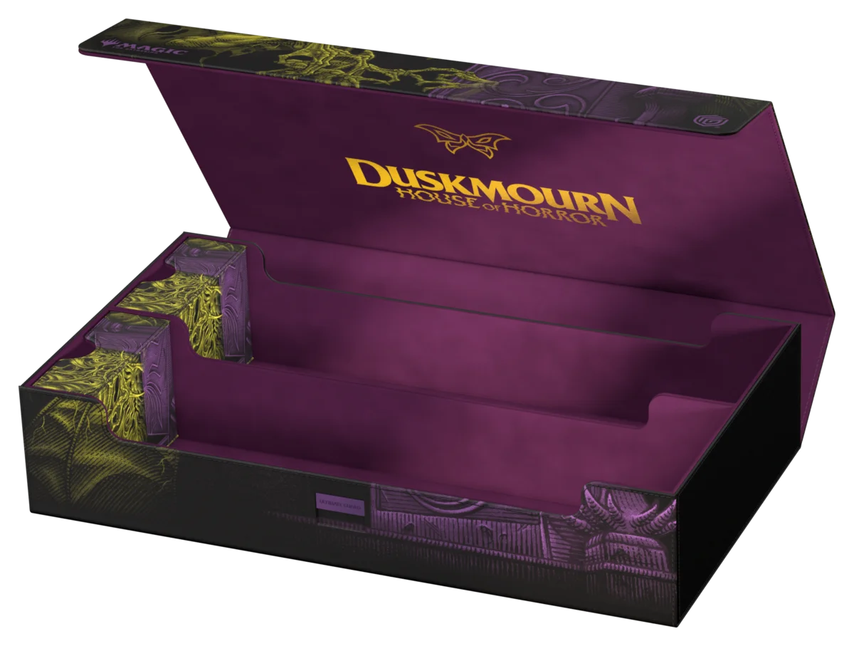 Valgavoth sucht nicht nur The House heim, sondern wacht auch über den Ultimate Guard Omnihive 1000+ Xenoskin zu Magic: The Gatherings neuem Set Duskmourn: House of Horror. Im Omnihive finden mehrere Deck-Boxen und/oder Play-Mats Platz, alternativ können dort über 1000 einzelne Karten (double-sleeved) aufbewahrt und transportiert werden. Die zwei flexibel positionierbaren, magnetischen Fächer sind perfekt geeignet, um Würfel und Tokens aufzubewahren. Die Deck-Box aus widerstandsfähigem Xenoskin-Material zeigt das offiziell lizensierte Magic: The Gathering-Artwork zu Valgavoth, Terror Eater von Illustrator Pig Hands. Die hochwertige und stylische Mikrofaser-Innenseite, ein starker Magnetverschluss sowie unser ZnapClaw-Mechanismus sorgen dafür, dass alle Inhalte des Omnihive sicher verstaut sind. Zum Beispiel die Sidewinder 100+ Xenoskin-Deck-Boxen im gleichen Stil aus unserer Duskmourn: House of Horror-Serie!