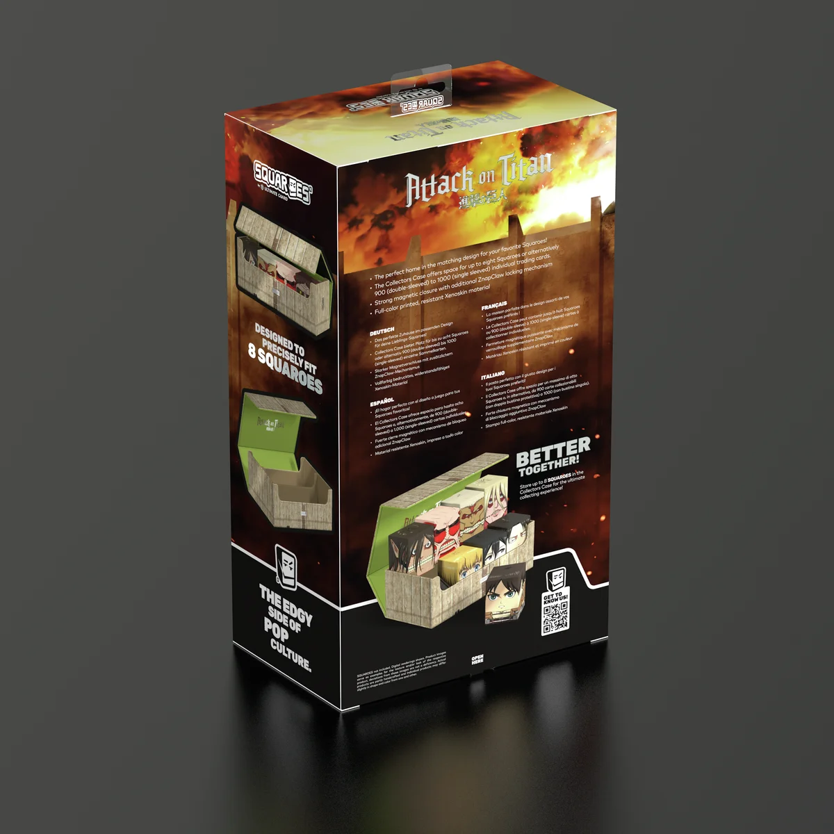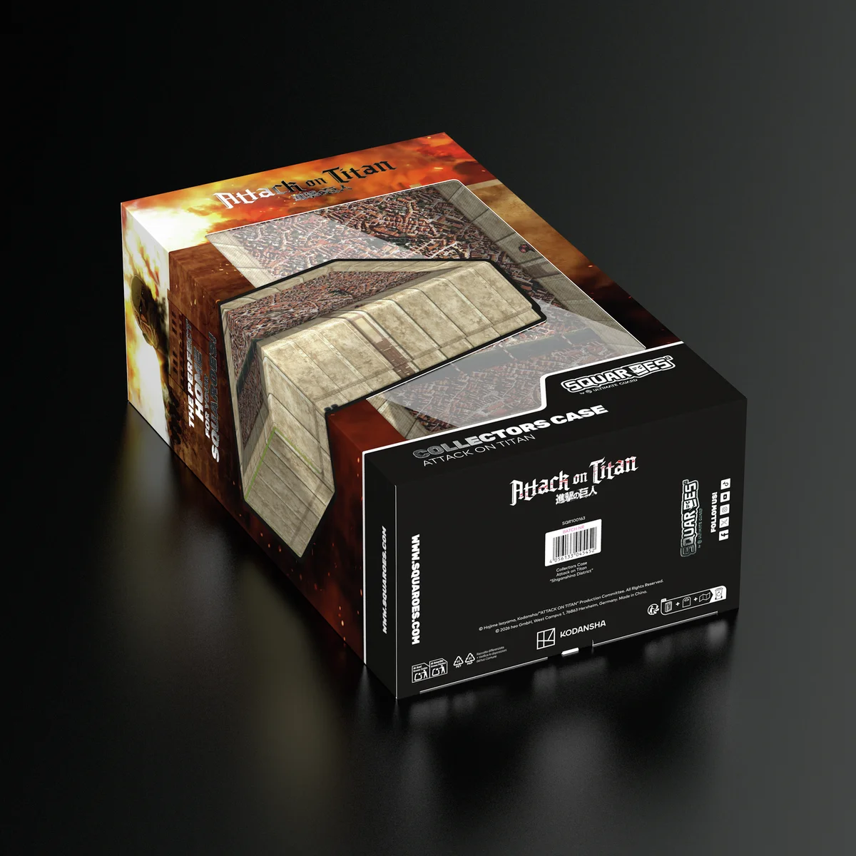 Die perfekte Aufbewahrungsbox für mehrere TCG-Decks, Sammelkarten - und natürlich deine Squaroes-Sammlung! Das Collectors Case Shiganshina District aus der Attack on Titan-Edition ist das perfekte Zuhause für bis zu acht Squaroes-Boxen, einzelne Spielkarten (bis zu 900 in doppelter Schutzhülle) oder Gaming-Zubehör aller Art. Das vollfarbig bedruckte, widerstandsfähige Xenoskin-Material sowie der starke Magnetverschluss mit ZnapClaw-Mechanismus sorgen dafür, dass alle Inhalte sicher verwahrt sind.