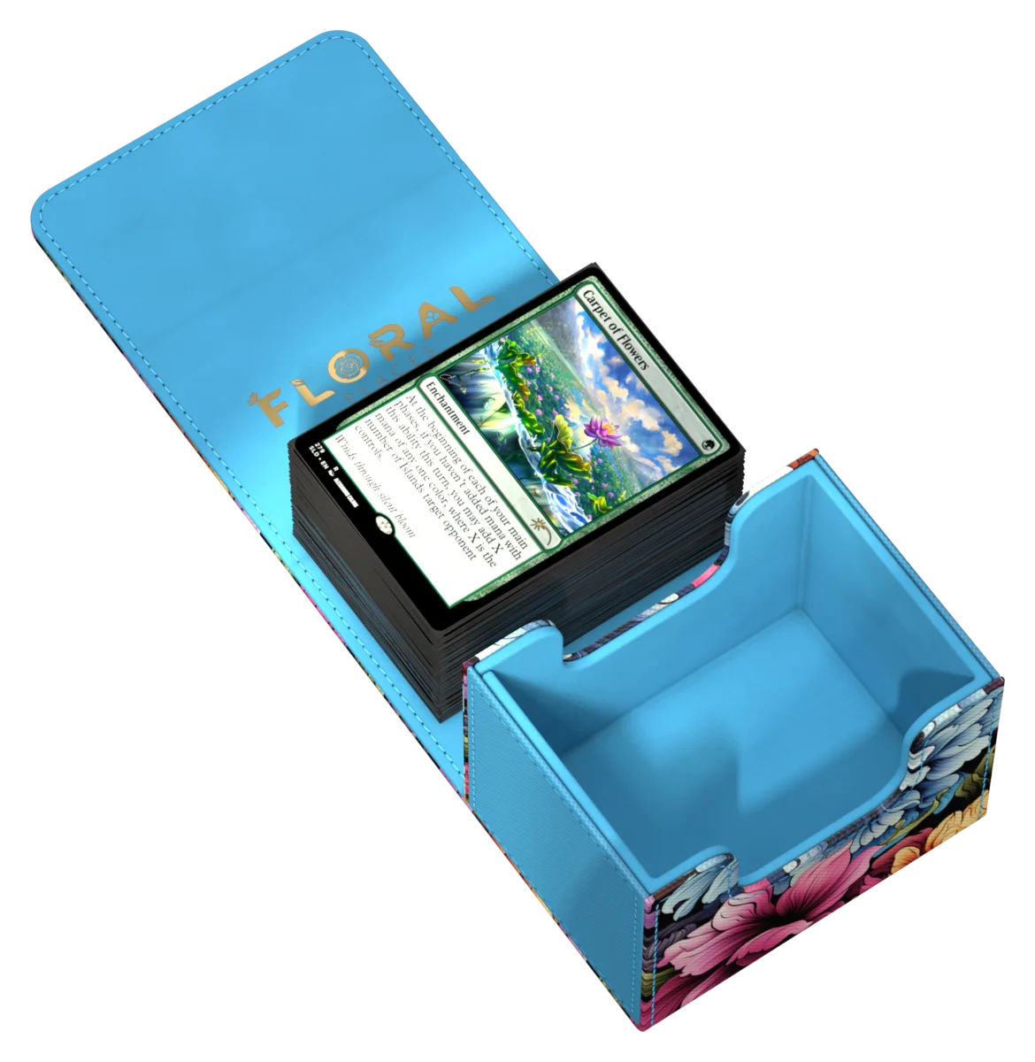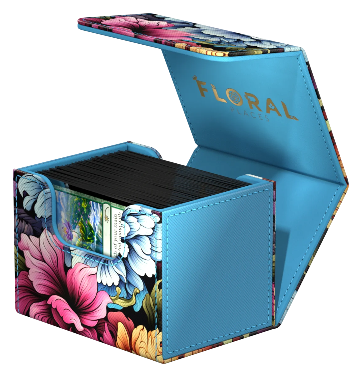 Der Sidewinder 100+ Xenoskin ist eine premium Deck-Box für Sammelkartenspiele und bietet herausragenden Kartenschutz dank des widerstandsfähigen Xenoskin-Materials, der hochwertigen Mikrofaser-Innenseite und des starken Magnetverschlusses. Gleichzeitig bietet der Sidewinder einfachen und bequemen Zugang zu den Karten im Inneren. Designt für 100 doppelt gesleevte Karten in Ultimate Guard-Hüllen, ist unser "Floral Places"-Sidewinder die perfekte Deck-Box für TCGs wie Magic: The Gathering, Pokémon, Lorcana, One Piece, Yu-Gi-Oh! und Flesh and Blood..