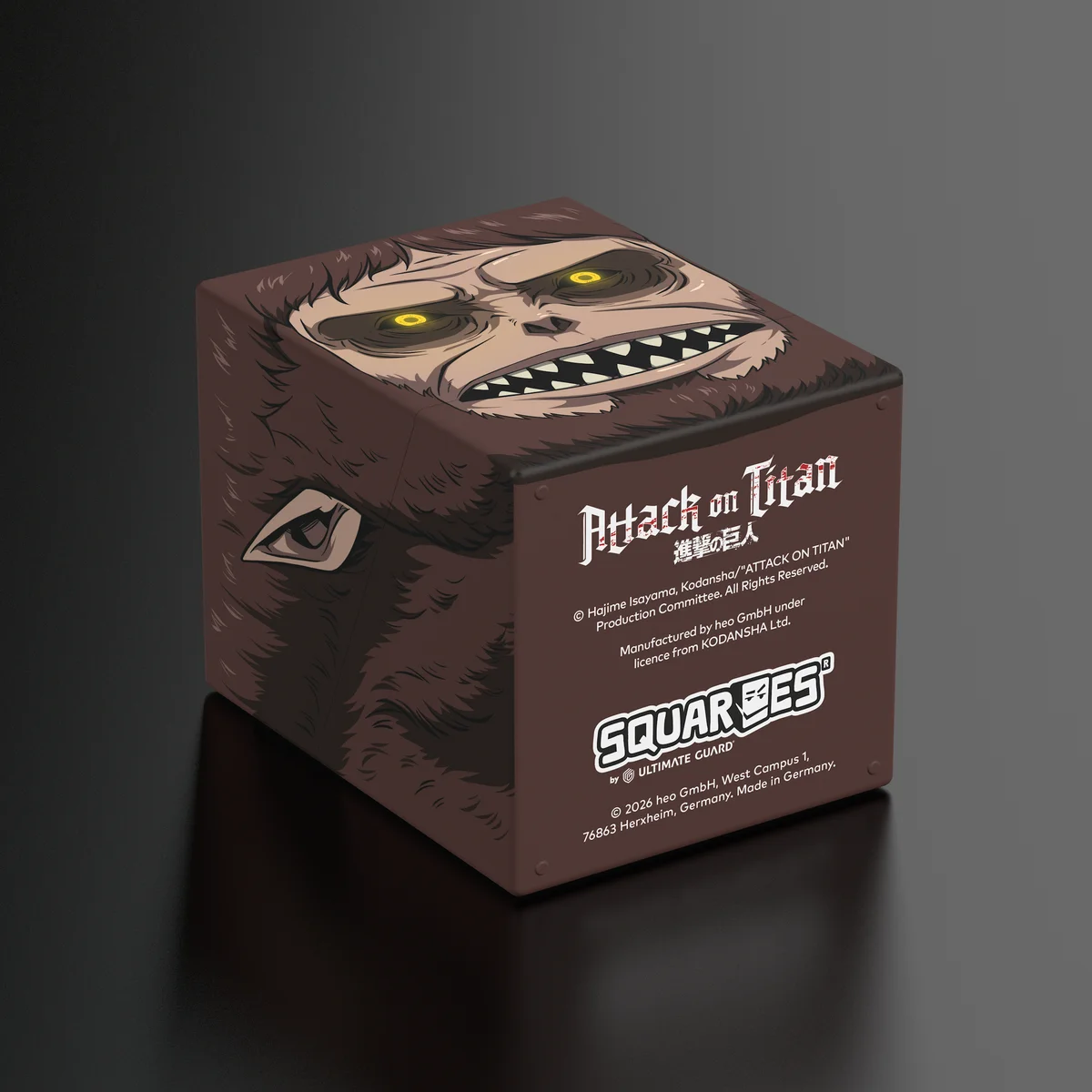 Sammelbare Box zur Aufbewahrung von TCG-Decks, Tabletop-Zubehör und/oder Sammlerstücken. Der Beast Titan Squaroe aus der Attack on Titan-Edition bietet als Deck-Box benutzt Platz für bis zu 100 Spielkarten in doppelter Schutzhülle. Squaroes werden aus 78% erneuerbaren Rohstoffen hergestellt und passen perfekt in das separat erhältliche Collectors Case.