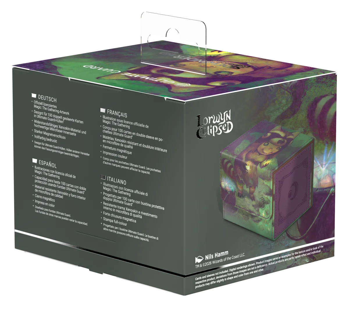 Der Sidewinder 100+ Xenoskin von Ultimate Guard ist eine Premium-Deckbox für Magic: The Gathering, die dank ihres widerstandsfähigen Xenoskin-Materials, der hochwertigen Mikrofaserinnenseite und eines starken Magnetverschlusses herausragenden Kartenschutz garantiert — und gleichzeitig einen einfachen und bequemen Zugriff auf die Karten im Inneren ermöglicht. Mit Platz für 100 doppelt gesleevte Karten (in Ultimate Guard-Hüllen*) und bedruckt mit offiziell lizenzierten Artworks aus dem Magic: The Gathering-Set "Lorwyn Eclipsed" ist der Sidewinder 100+ Xenoskin die perfekte MTG-Deckbox für alle Magic-Formate (Commander/EDH, Modern, Standard, usw.). Kombinierbar mit Omnihive-, Superhive- und Smarthive-Boxen von Ultimate Guard.