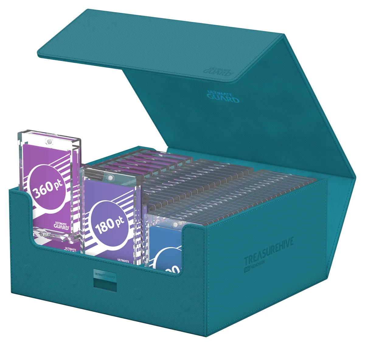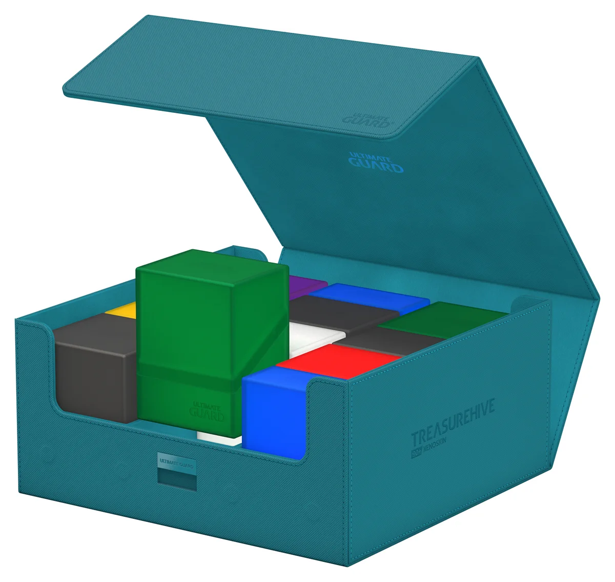Das neueste Mitglied unserer Hive-Familie: das Treasurehive 90+! Speziell für die Aufbewahrung von bis zu 90 Ultimate Guard Magnetic Card Cases geeignet (mit 35pt). Alternativ kann diese elegante Schatzkiste auch über 370+ Toploader, 990 Karten (double-sleeved) und eine Vielzahl von Ultimate Guard-Deck Cases aufnehmen, um deine wertvollen Karten zu schützen. Schütze deine Schätze besser als jeder Pirat!
