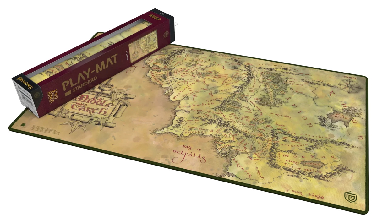 Die 61 x 35 cm große Play-Mat der offiziellen The Lord of the Rings™ "Places of Middle-earth"-Edition von Ultimate Guard schützt Karten und Hüllen während des Spiels und verbessert das Spielerlebnis dank der rutschfesten Unterseite, während die genähten Ränder für eine noch längere Lebensdauer sorgen.