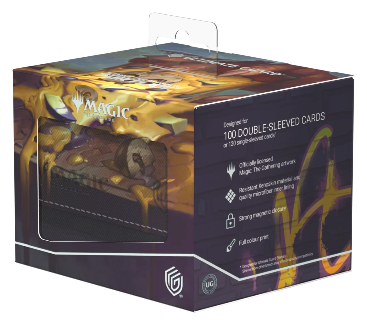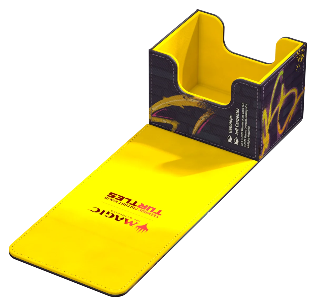 Ultimate Guard's Sidewinder 100+ Xenoskin is a premium Magic: The Gathering deck box offering exceptional card protection with its durable Xenoskin material, microfiber inner lining, and strong magnetic closure—all while providing easy and convenient access to the cards inside. With space for 100 double-sleeved cards in Ultimate Guard sleeves* and printed with officially licensed artwork from the "Magic: The Gathering | Teenage Mutant Ninja Turtles" set, the Sidewinder 100+ Xenoskin is the perfect MTG deck box for all Magic formats (Commander/EDH, Modern, Standard, etc.). Designed to combine with Ultimate Guard's Omnihive, Superhive, and Smarthive mass storage boxes.