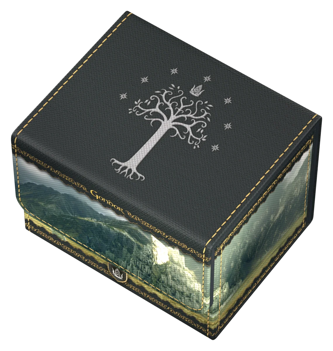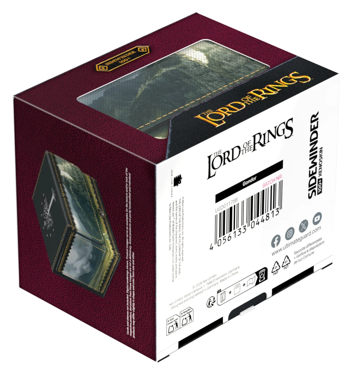 The Sidewinder 100+ Xenoskin is a high-quality TCG deck box that offers premium card protection thanks to its resistant Xenoskin material, microfiber inner lining, and strong magnetic closure, all while still granting easy and convenient access to the cards inside. The deck boxes from Ultimate Guard's official The Lord of the Rings™ edition "Places of Middle-earth" are printed in full color and are optimized to hold 100 double-sleeved cards in Ultimate Guard sleeves.