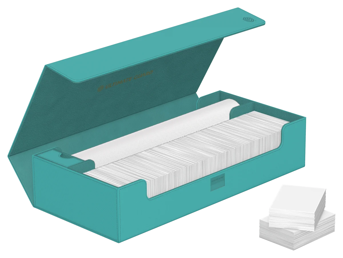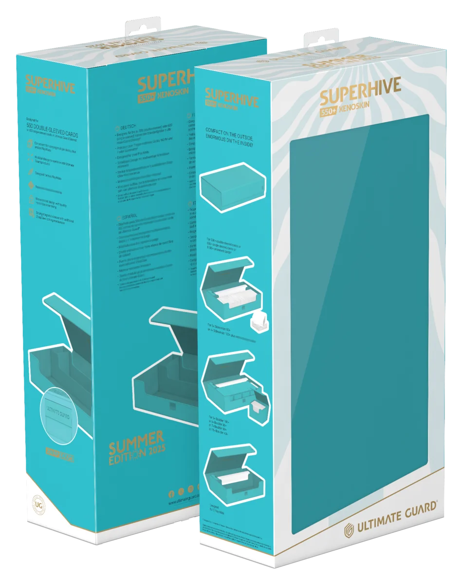 Catch the ultimate summer vibes with Ultimate Guard's Superhive 550+ Xenoskin from the limited "Summer Edition 2025" in four vibrant new colors: Dandelion, Peach, Lime and Lagoon! The Superhive mass storage box is designed to hold two Play-Mats plus up to 550 double-sleeved cards (650 single-sleeved), four Sidewinder 100+ or five Boulder 100+ deck boxes and features an additional tray for accessories. A strong magnetic closure with additional ZnapClaw locking mechanism, resistant Xenoskin material, and quality microfiber inner lining guarantee the safe storage of the Superhive's contents.