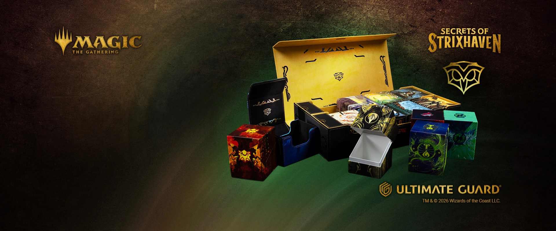 Find your place among the five colleges and discover the amazing Mystical Archive artworks on our official Secrets of Strixhaven deck boxes.