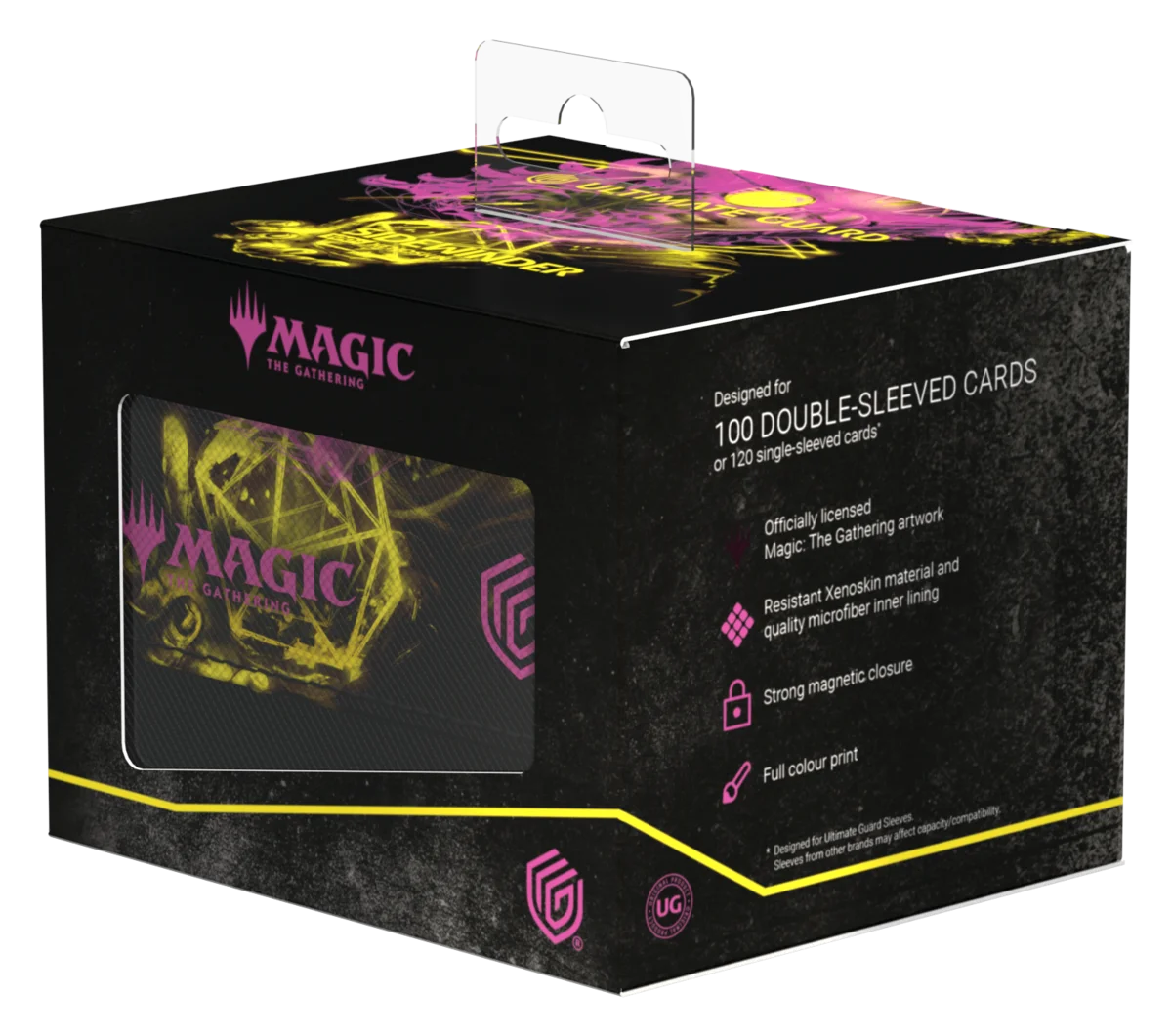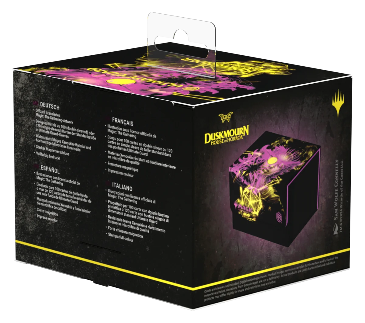 The mysterious Double Exposure artworks from Duskmourn: House of Horror not only delight in the cards from Magic: The Gathering's new set, but also in our Sidewinder deck boxes! Will you join the Rescue Squad around Tyvar, Zimone, Kaito and The Wandering Rescuer? Will you side with the legendary villains in the never-ending haunted house? Or do you just think Kona, Rescue Beastie is cute? The choice is yours! Our Sidewinder 100+ Xenoskin are printed in full color with officially licensed Magic: The Gathering artwork. The deck boxes are made of durable Xenoskin material and have a high-quality microfiber inner lining. The sidewinders offer space for 100 double-sleeved or 120 single-sleeved cards - and are a perfect match for the Omnihive 1000+ Xenoskin from the Duskmourn series!
