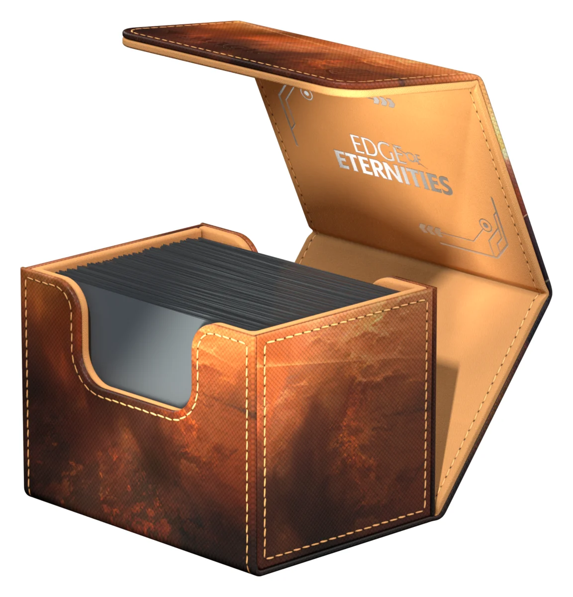 The Sidewinder 100+, made of durable Xenoskin material, holds up to 100 double-sleeved cards in Ultimate Guard sleeves and is the perfect deck box for Commander/EDH decks. Printed in full color with officially licensed artworks from Magic: The Gathering's "Edge of Eternities" set, Ultimate Guard's Sidewinder deck boxes with their strong magnetic closure and quality microfiber inner lining are a safe and reliable storage place for MTG decks and individual trading cards.