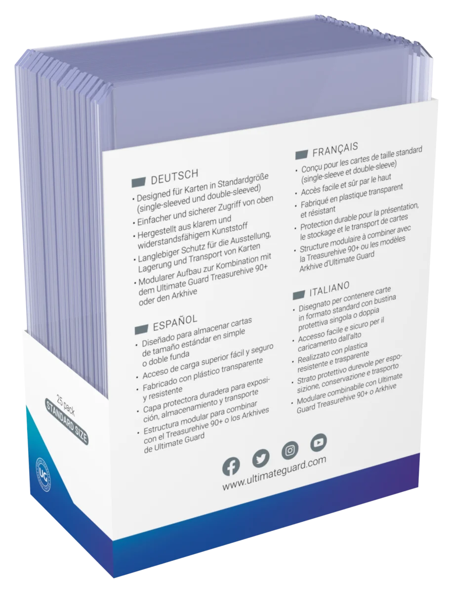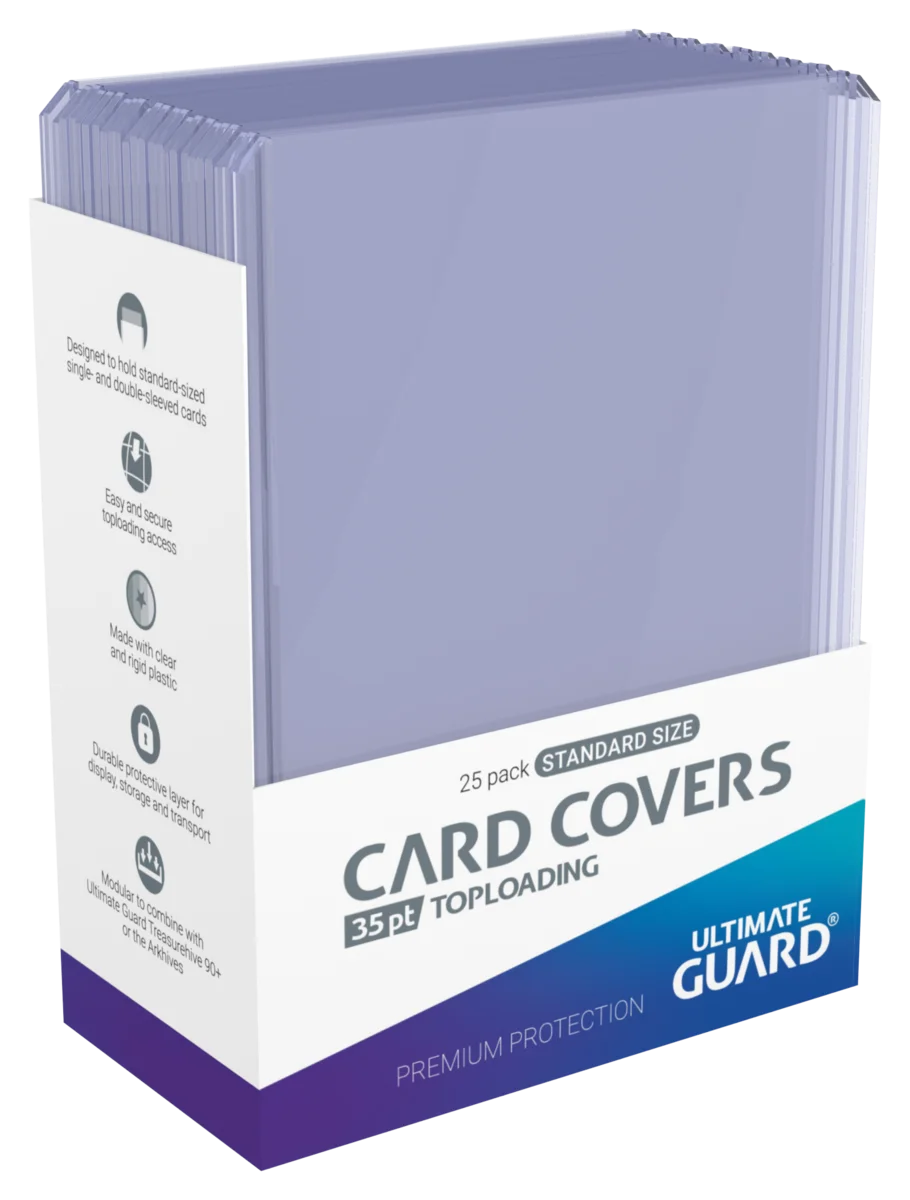 Whether you want to add another layer of protection to your collection, ship some valuable cards to a new owner or preserve the quality of your prized possesions, our Ultimate Guard Card Covers Toploading are an excellent fit for all your needs. Made of durable, clear plastic, the case grants you neat toploading acccess to your cards. Unsleeved, single-sleeved or double-sleeved, these toploaders can hold whatever suits you best!