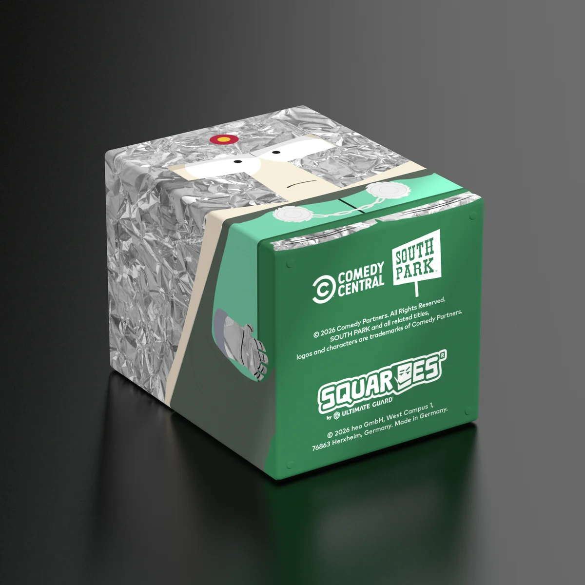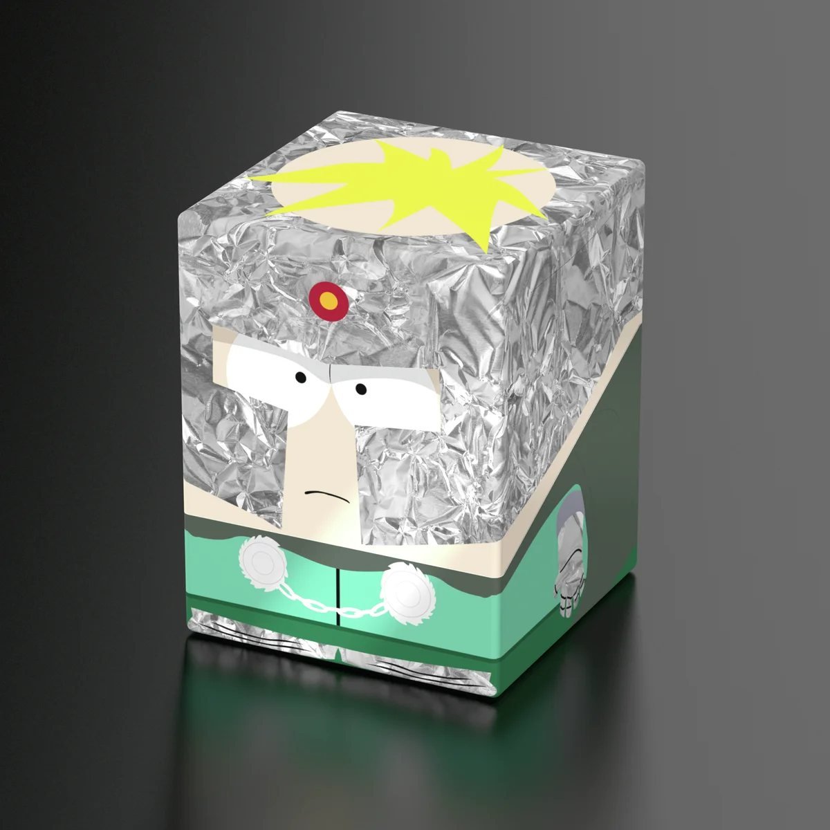 Collectible box for storing TCG decks, tabletop gaming accessories, and/or collectibles. The Professor Chaos Squaroe from the South Park™ edition holds up to 100 cards in double protective sleeves if used as a deck box. Squaroes are made from 78% renewable resources and fit perfectly into the separately available Collectors Case.