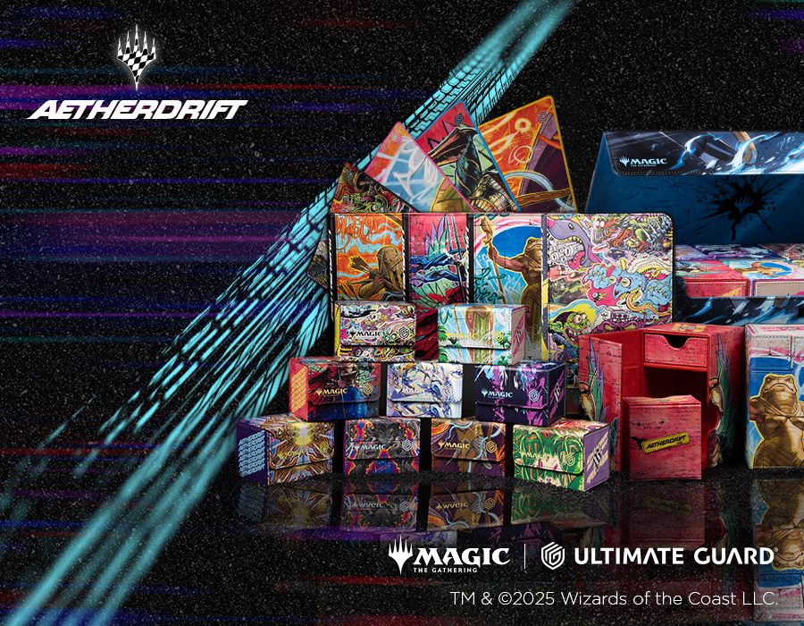 Stakes are high and competition is fierce in the interplanar death-race of Aetherdrift! So buckle up for high-speed action and Ultimate Guard's official product line, featuring a myriad of deck cases, play-mats and binders, including the Revved-Up Racer special edition.