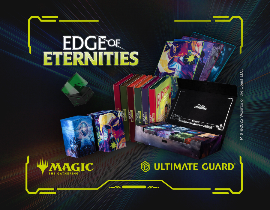 Ready to travel towards the Edge of Eternities? Get ready to discover the epic visuals from Magic's first ever venture into space on a range of Ultimate Guard products almost as vast as the cosmos – including deck cases, play-mats, binders and mass storage boxes.