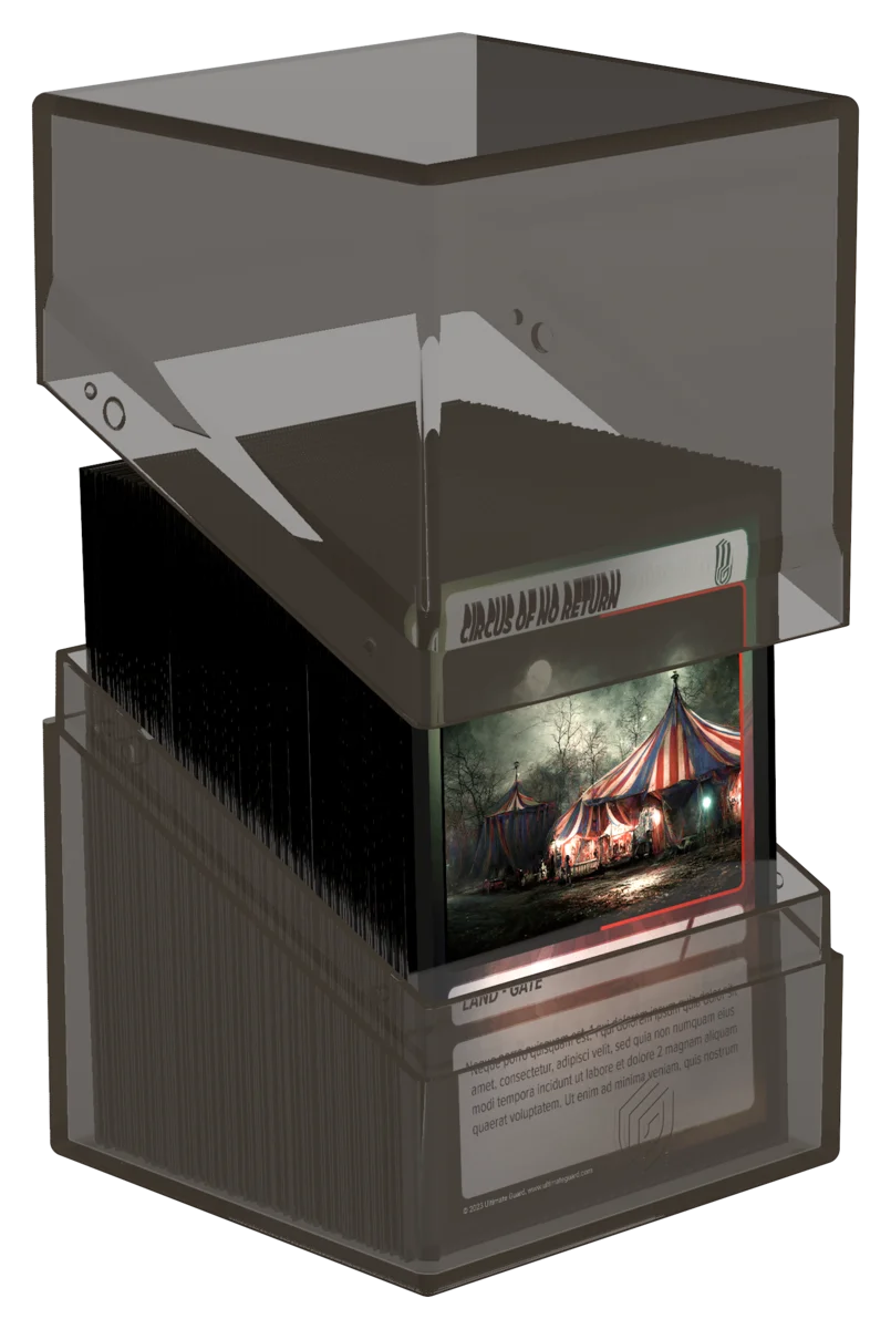Capacidad para hasta 100 cartas con doble protección usando fundas Ultimate Guard.