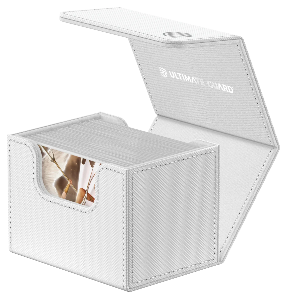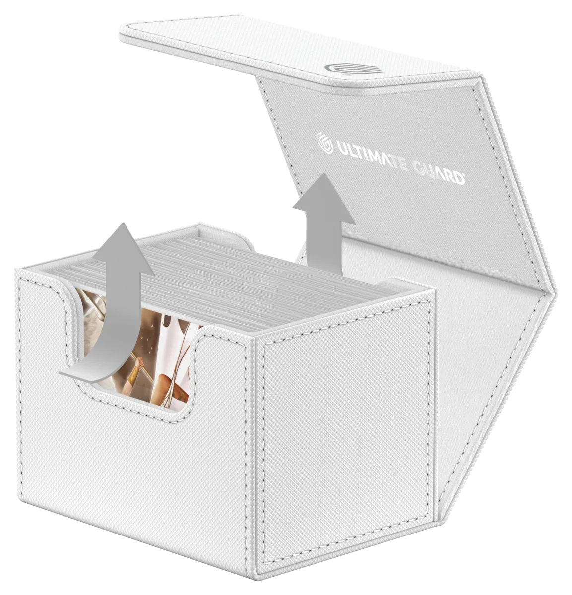 Nuestro práctico estuche para mazos Sidewinder 100+ proporciona un fácil acceso a su mazo de cartas desde ambos lados. La caja está optimizada para contener 100 cartas de tamaño estándar en doble funda o 120 en una sola funda de la marca Ultimate Guard.