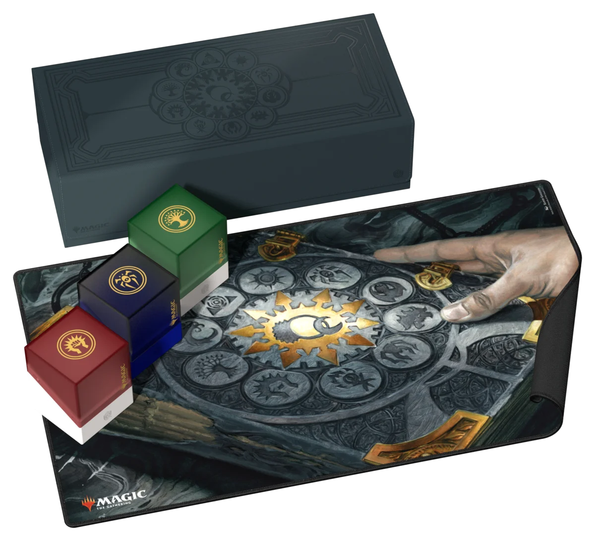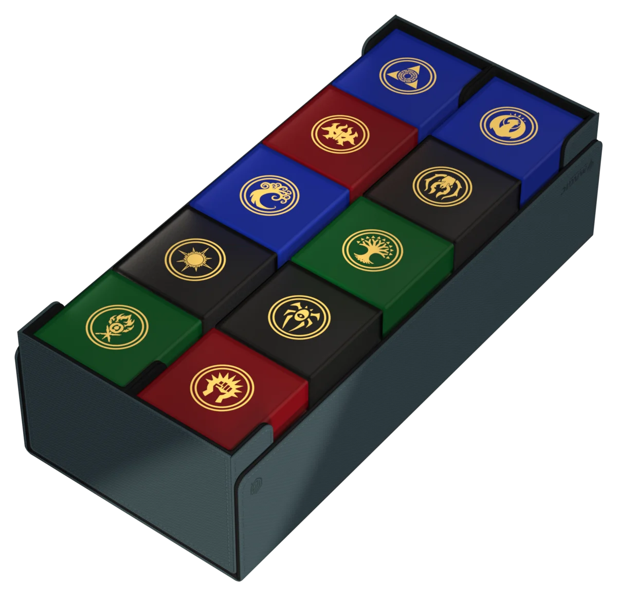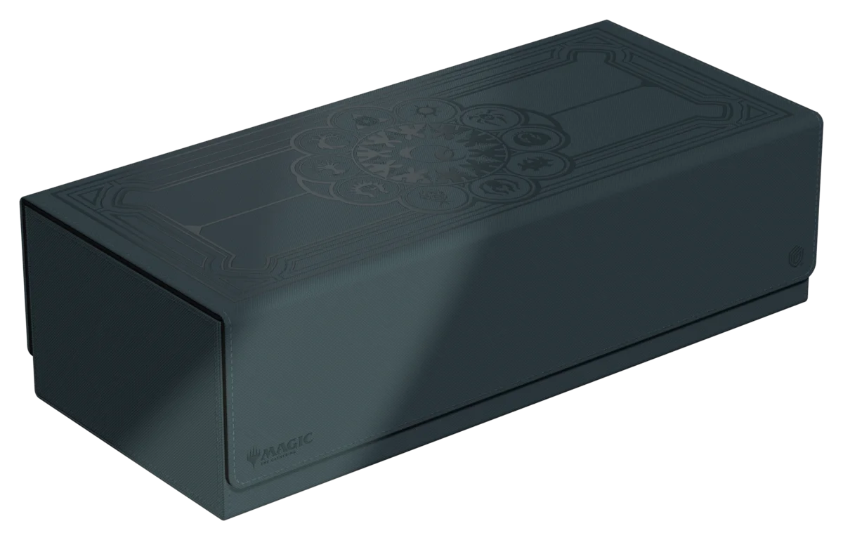 ¡Reúne a los gremios de Ravnica! La impresionante Arkhive 1000+ Xenoskin de la serie "Guild Summit" es el lugar de almacenamiento perfecto para colecciones más grandes, un cube o varias deck boxes - por ejemplo nuestras diez Boulder 100+ en el diseño de gremio. La tapa, completamente desmontable por primera vez en el Arkhive, se fija por ambos lados con un fuerte cierre magnético así como con nuestro fiable mecanismo ZnapClaw y lleva el símbolo del Pacto entre Gremios. La Arkhive 1000+ Xenoskin está fabricada con resistente material Xenoskin.