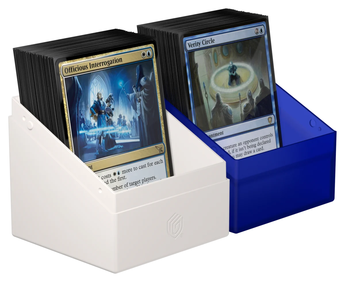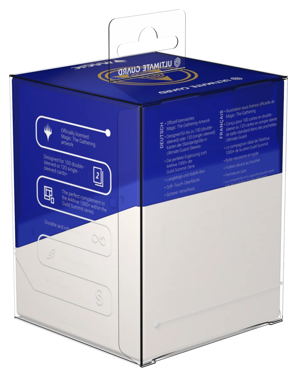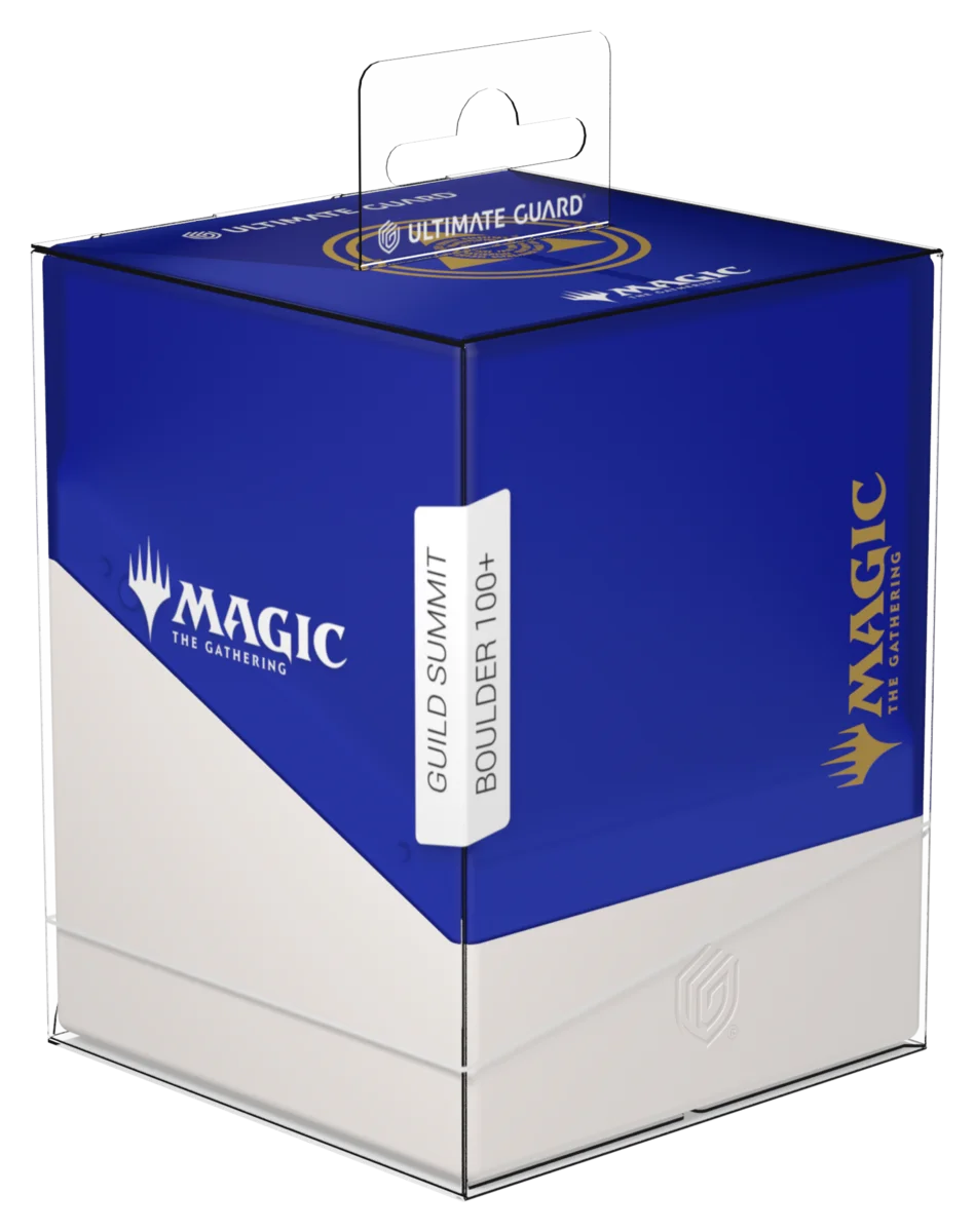 Ultimate Guard celebra uno de los planos más icónicos y populares de la historia de Magic: The Gathering con la serie "Guild Summit": Diez elegantes Boulder 100+ con el escudo dorado de cada gremio en la deck box semitransparente con un acabado sedoso y suave al tacto. El Boulder 100+ tiene capacidad para 100 cartas (double-sleeved), ¡lo que lo convierte en el hogar perfecto para tu mazo Commander bicolor! No te pierdas tampoco la impresionante Arkhive 1000+ Xenoskin de la serie "Guild Summit", que es el lugar perfecto para guardar hasta diez Boulder 100+.