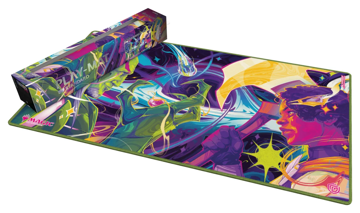 El tapete en tamaño estándar 61x35 cm muestra ilustraciones oficiales licenciadas del set "Edge of Eternities" de Magic: The Gathering. El tapete acolchonado y suave con base antideslizante mejora la experiencia de juego, protege las fundas y accesorios, y es aún más duradero que los tapetes clásicos gracias a sus bordes cosidos.