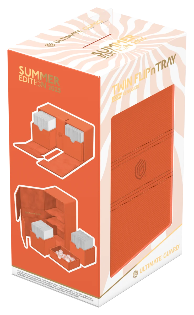Disfruta de las últimas vibraciones veraniegas con el Twin Flip'n'Tray 200+ Xenoskin de Ultimate Guard de la edición limitada "Summer Edition 2025" en cuatro nuevos y radiantes colores: Dandelion, Peach, Lime et Lagoon La caja del mazo Twin Flip'n'Tray tiene dos compartimentos accesibles de forma independiente con un interior de microfibra de alta calidad para 100 (de doble funda) o 120 (de sola funda) cartas cada uno. ¡Además, la resistente caja Xenoskin tiene un compartimento extraíble para accesorios y un resistente cierre magnético para mantener a salvo en su interior las cartas de Magic: The Gathering, Pokémon, Lorcana, One Piece o Yu-Gi-Oh!