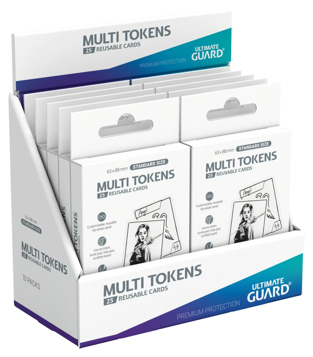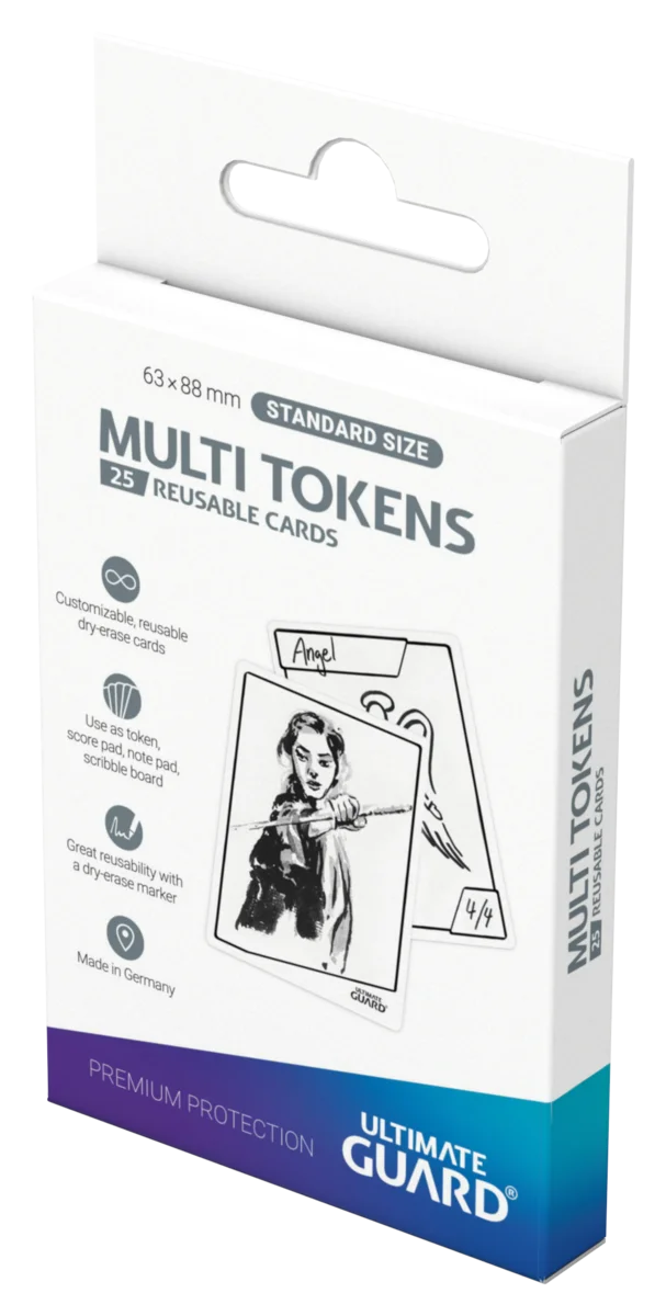 Associés à un feutre effaçable, les jetons sont personnalisables et réutilisables, ils sont de taille standard et sont fabriqués en carton à jouer solide pour un divertissement durable. Gribouillez, dessinez, comptez et faites tout disparaître à nouveau avec nos jetons Ultimate Guard Multi Tokens.