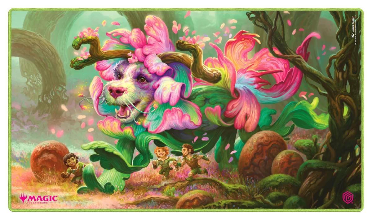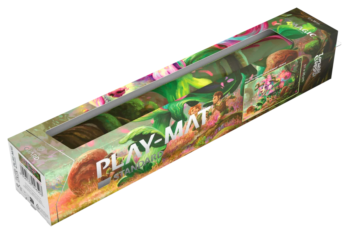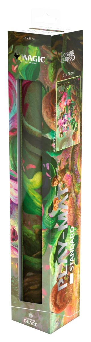Le Play-Mat Standard d'Ultimate Guard, avec des illustrations officielles de l'extension "Lorwyn Eclipsed" de Magic: The Gathering, est un tapis de jeu MTG de taille standard (61 x 35 cm) de haute qualité, conçu pour améliorer l'expérience de jeu et protéger les cartes, les pochettes et les accessoires des rayures, de l'usure et de la saleté. Fabriqué en caoutchouc naturel et avec un rembourrage doux de 2 mm, ce playmat offre une surface en tissu résistante et un dessous antidérapant fiable signé Ultimate Guard. Les bordures cousues empêchent l'effilochage et garantissent une grande durabilité sur le long terme.