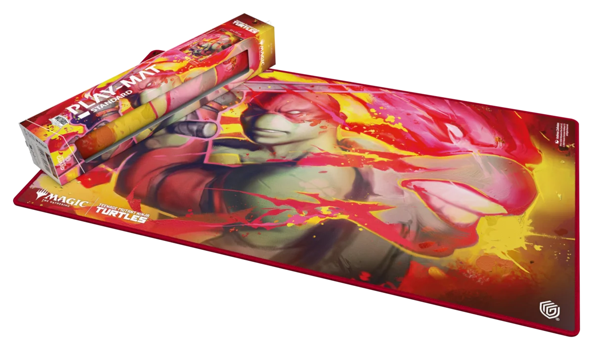 Le Play-Mat Standard d’Ultimate Guard, avec des illustrations officielles de l’extension "Magic: The Gathering | Teenage Mutant Ninja Turtles", est un tapis de jeu MTG de taille standard (61 x 35 cm) de haute qualité, conçu pour améliorer l’expérience de jeu et protéger les cartes, les pochettes et les accessoires des rayures, de l’usure et de la saleté. Fabriqué en caoutchouc naturel et avec un rembourrage doux de 2 mm, ce playmat offre une surface en tissu résistante et un dessous antidérapant fiable signé Ultimate Guard. Les bordures cousues empêchent l’effilochage et garantissent une grande durabilité sur le long terme.