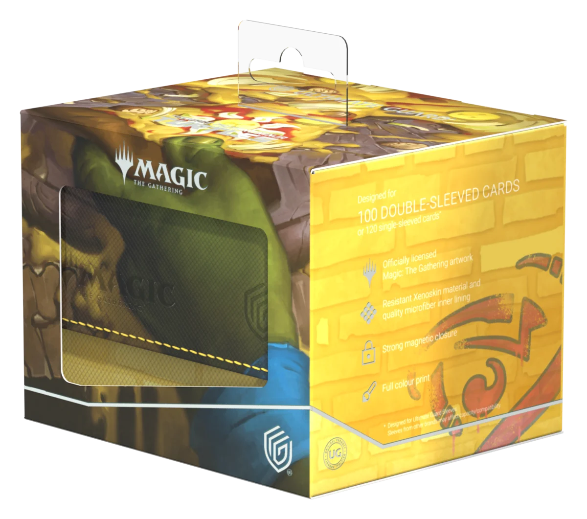 Le Sidewinder 100+ Xenoskin d'Ultimate Guard est un deck box haut de gamme pour Magic: The Gathering, offrant une protection exceptionnelle des cartes grâce à son matériau Xenoskin résistant, sa doublure intérieure en microfibre de qualité et sa fermeture magnétique solide — tout en offrant un accès facile et pratique aux cartes qu'il contient. Conçu pour contenir 100 cartes en double sleeve dans des pochettes Ultimate Guard* et imprimé avec des illustrations officielles de l’extension "Magic: The Gathering | Teenage Mutant Ninja Turtles", le Sidewinder 100+ Xenoskin est le deck box MTG parfaite pour tous les formats Magic (Commander/EDH, Modern, Standard, etc.). Le Sidewinder 100+ Xenoskin se combine idéalement avec les boîtes de rangement Omnihive, Superhive et Smarthive d’Ultimate Guard.