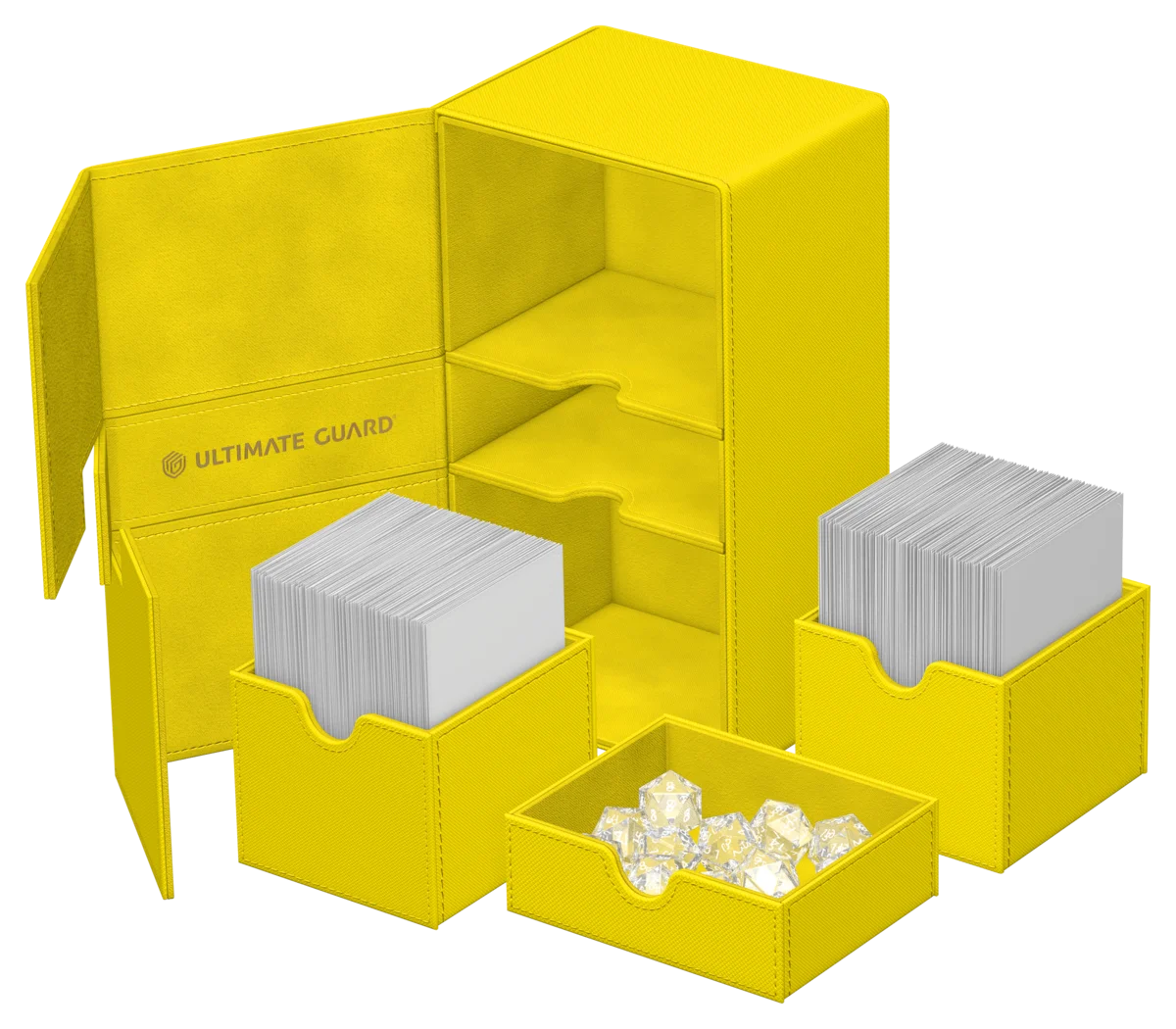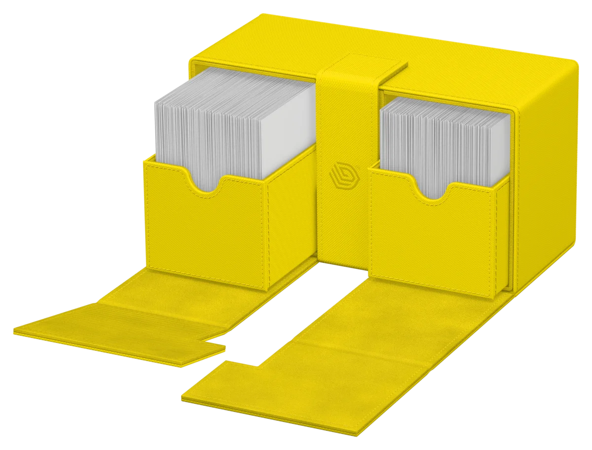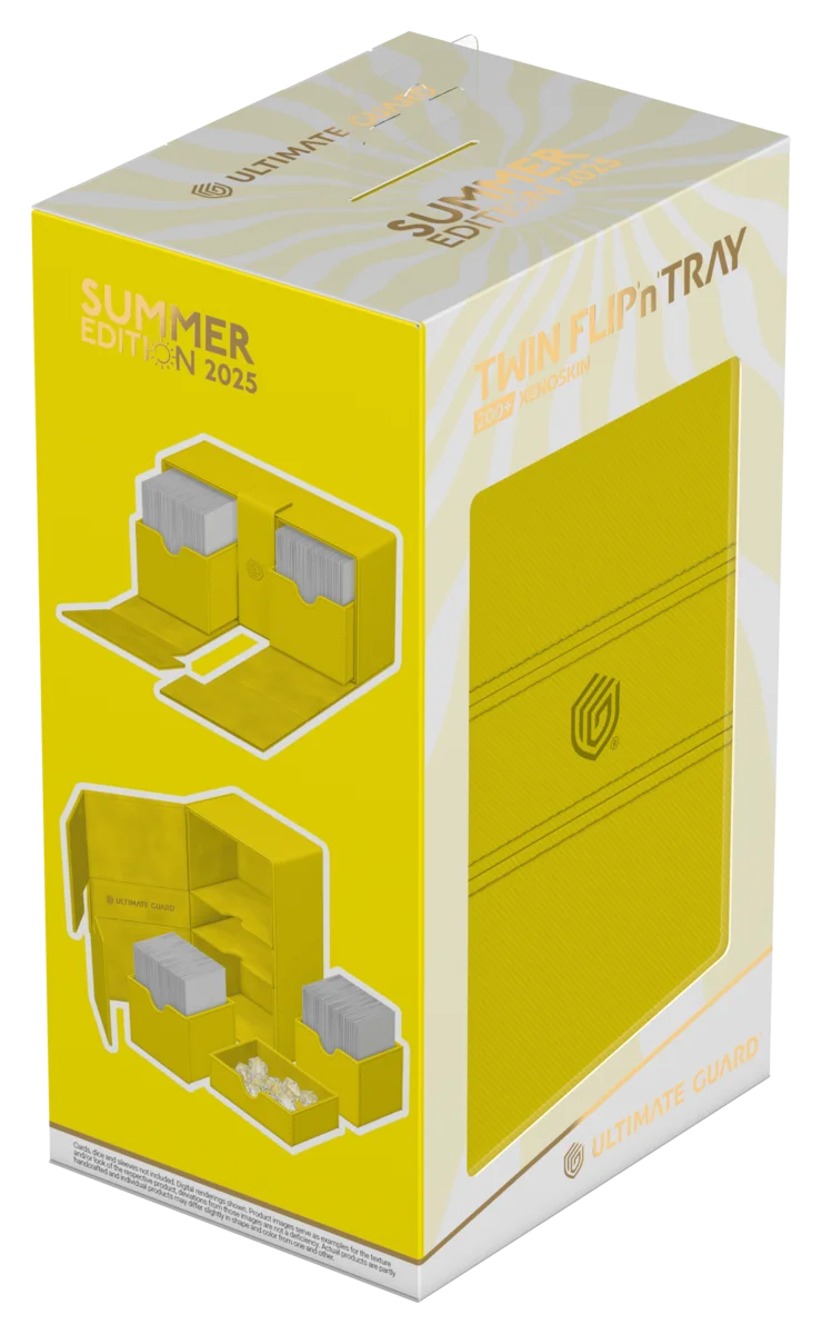 Obtiens les ultimes vibrations estivales avec le Twin Flip'n'Tray 200+ Xenoskin d'Ultimate Guard de l'édition limitée "Summer Edition 2025" en quatre nouvelles couleurs éclatantes : Dandelion, Peach, Lime et Lagoon ! La boîte de deck Twin Flip'n'Tray dispose de deux compartiments accessibles indépendamment l'un de l'autre et dotés d'un intérieur en microfibre de haute qualité pour 100 (en double-sleeve) ou 120 (en simple-sleeve) cartes chacun. De plus, la boîte résistante Xenoskin dispose d'un compartiment amovible pour les accessoires et d'une fermeture magnétique puissante pour garder les cartes Magic : The Gathering, Pokémon, Lorcana, One Piece ou Yu-Gi-Oh ! en sécurité à l'intérieur.