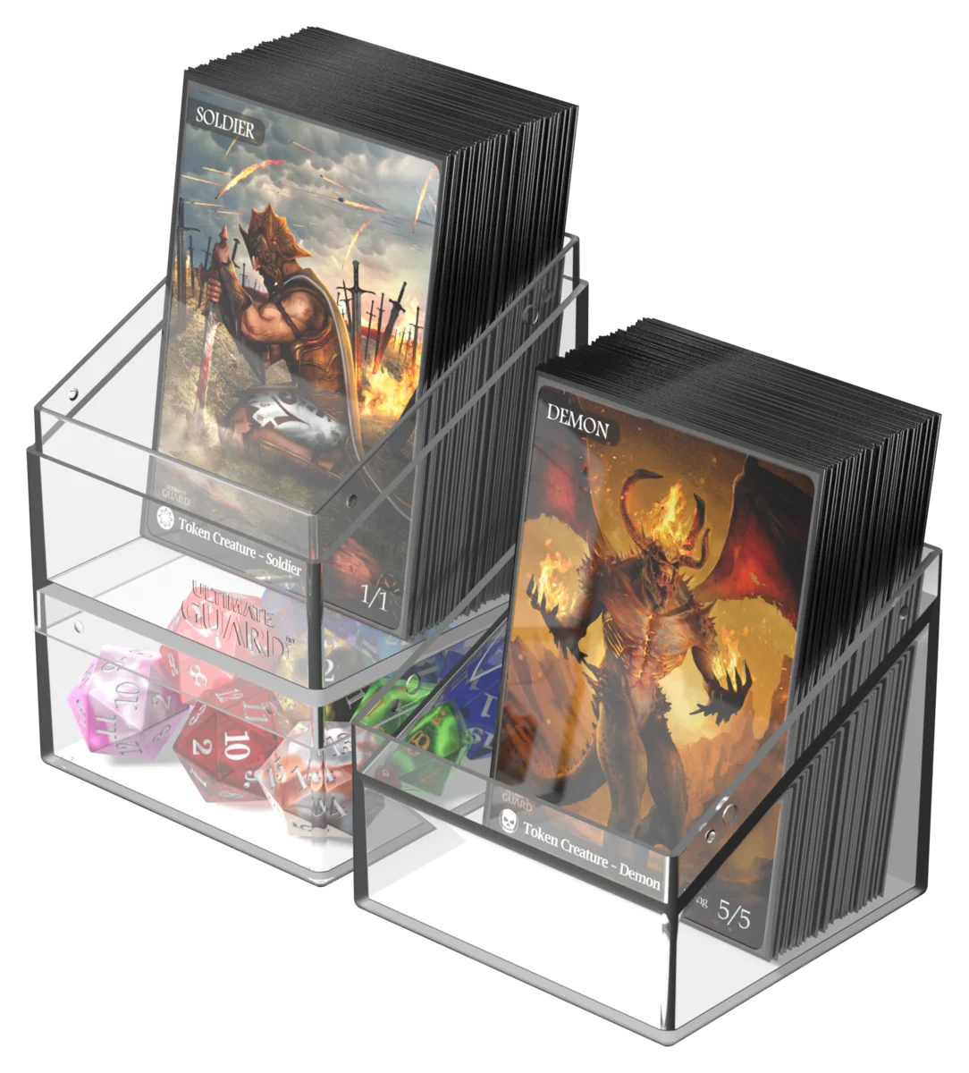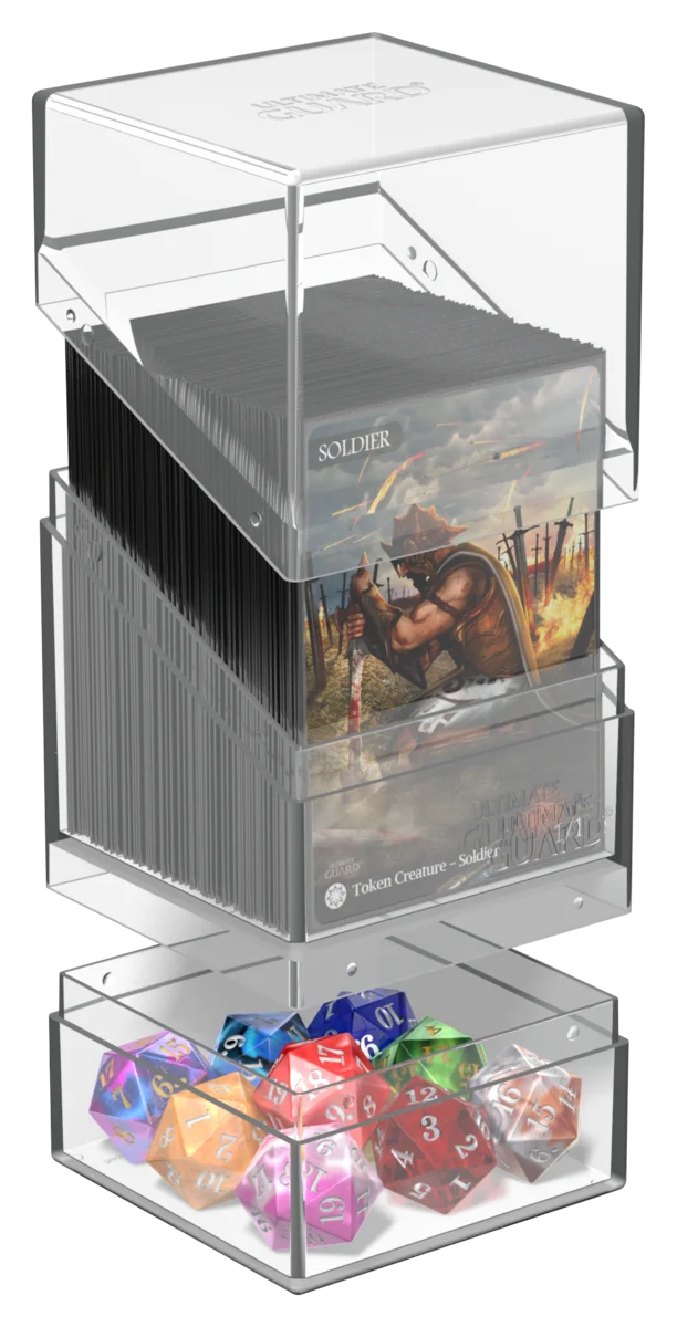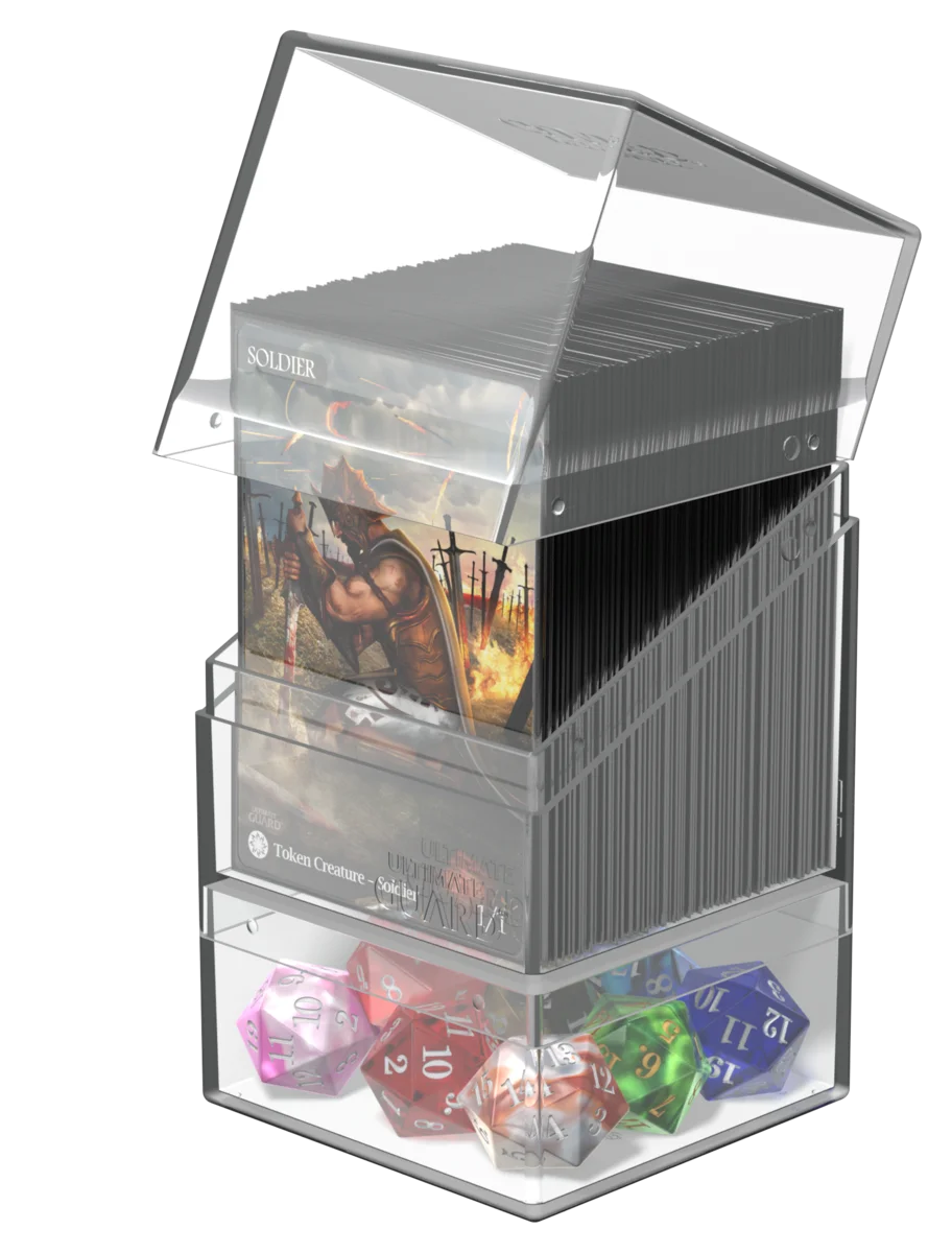 - Peut contenir jusqu'à 100 cartes de taille standard (en double-sleeve) ou 120 cartes (single-sleeve) en pochettes Ultimate Guard¹