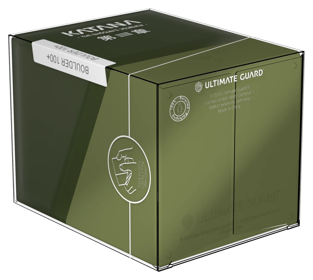 Le Boulder 100+ de la série « Katana: The Shogun’s Journey » d’Ultimate Guard est une deck box durable et fiable avec notre populaire surface soft-touch. Malgré sa fermeture sécurisée, le Boulder 100+ s’ouvre facilement et offre une capacité de 100 cartes en double sleeve dans des pochettes Ultimate Guard* issues de jeux de cartes à collectionner tels que Magic: The Gathering, Pokémon, Lorcana, Flesh and Blood, Yu-Gi-Oh! et One Piece. Conçu pour se combiner avec toutes les boîtes de rangement pour decks d’Ultimate Guard, ces Boulder 100+ s’intègrent parfaitement dans l’Arkhive 400+ Xenoskin de la même série.
