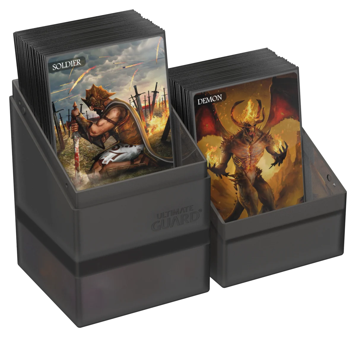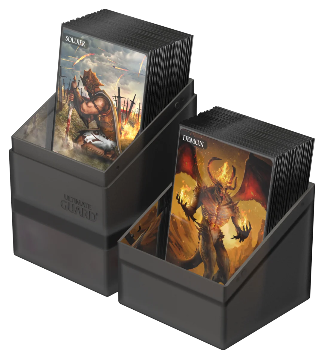 - Peut contenir jusqu'à 100 cartes de taille standard (en double-sleeve) ou 120 cartes (single-sleeve) en pochettes Ultimate Guard¹