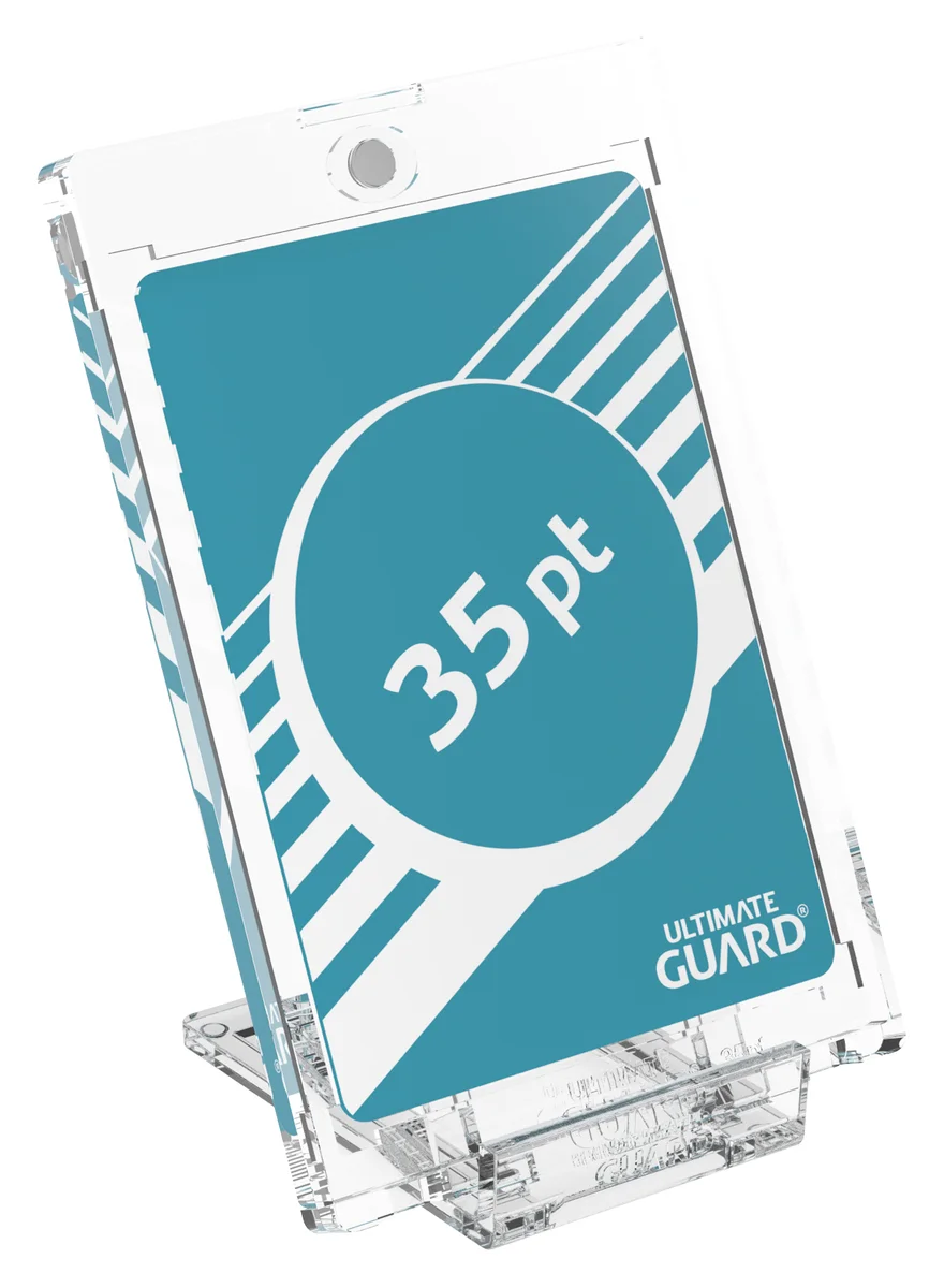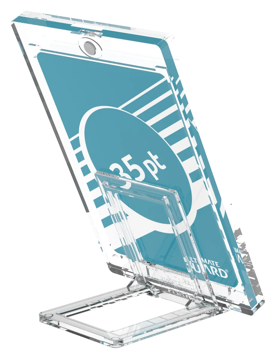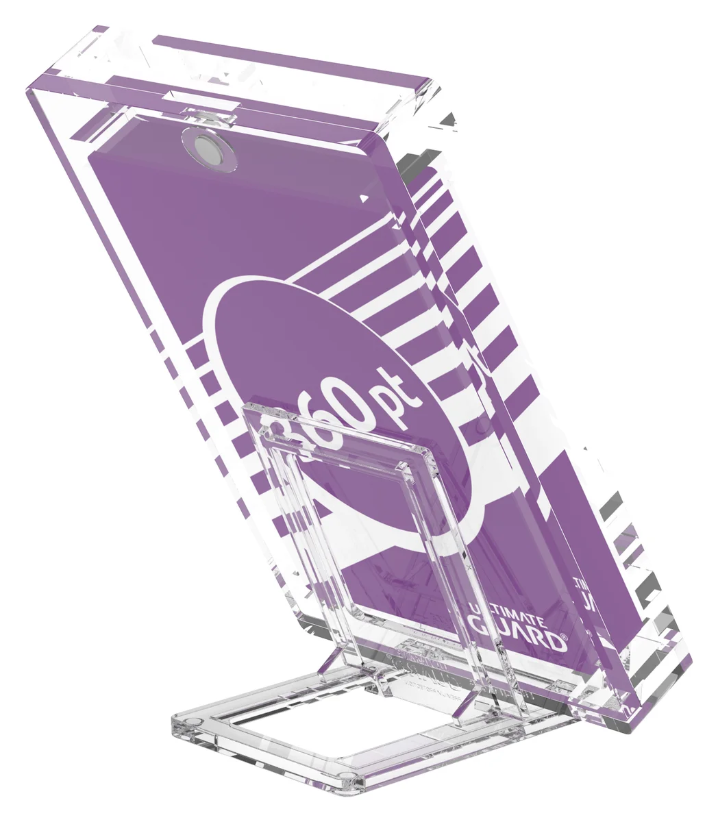 Our Slider Stands help you present the most precious pieces of your collection in an appealing way. They consist of two sturdy crystal-clear pieces to slide flexibly into various positions, making them universally compatible. Optimized to hold the Ultimate Guard Magnetic Card Cases in numerous sizes, they are almost invisible and grant an eye-catching display solution for your cards and cases.