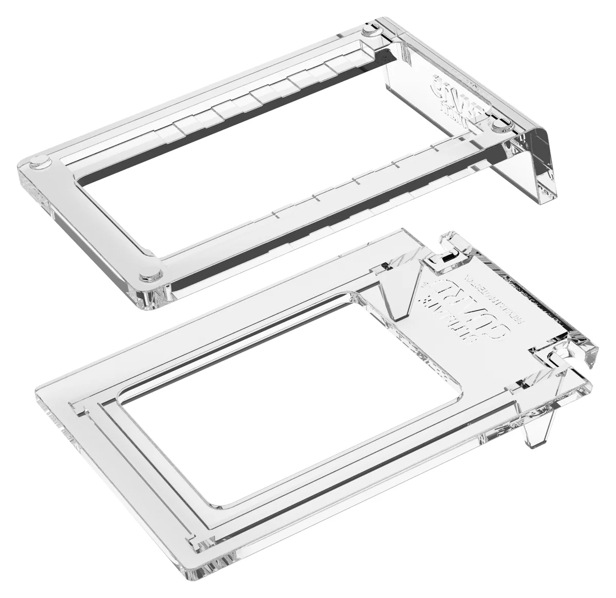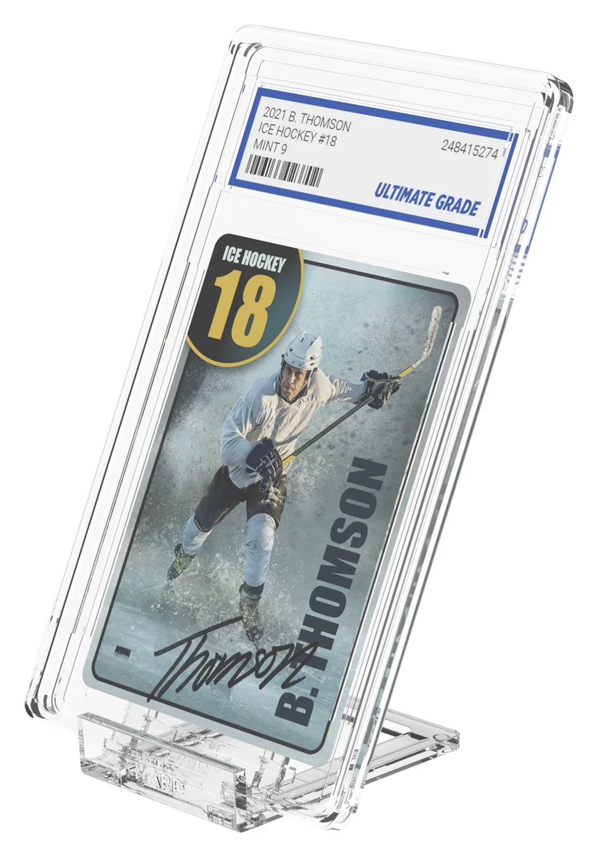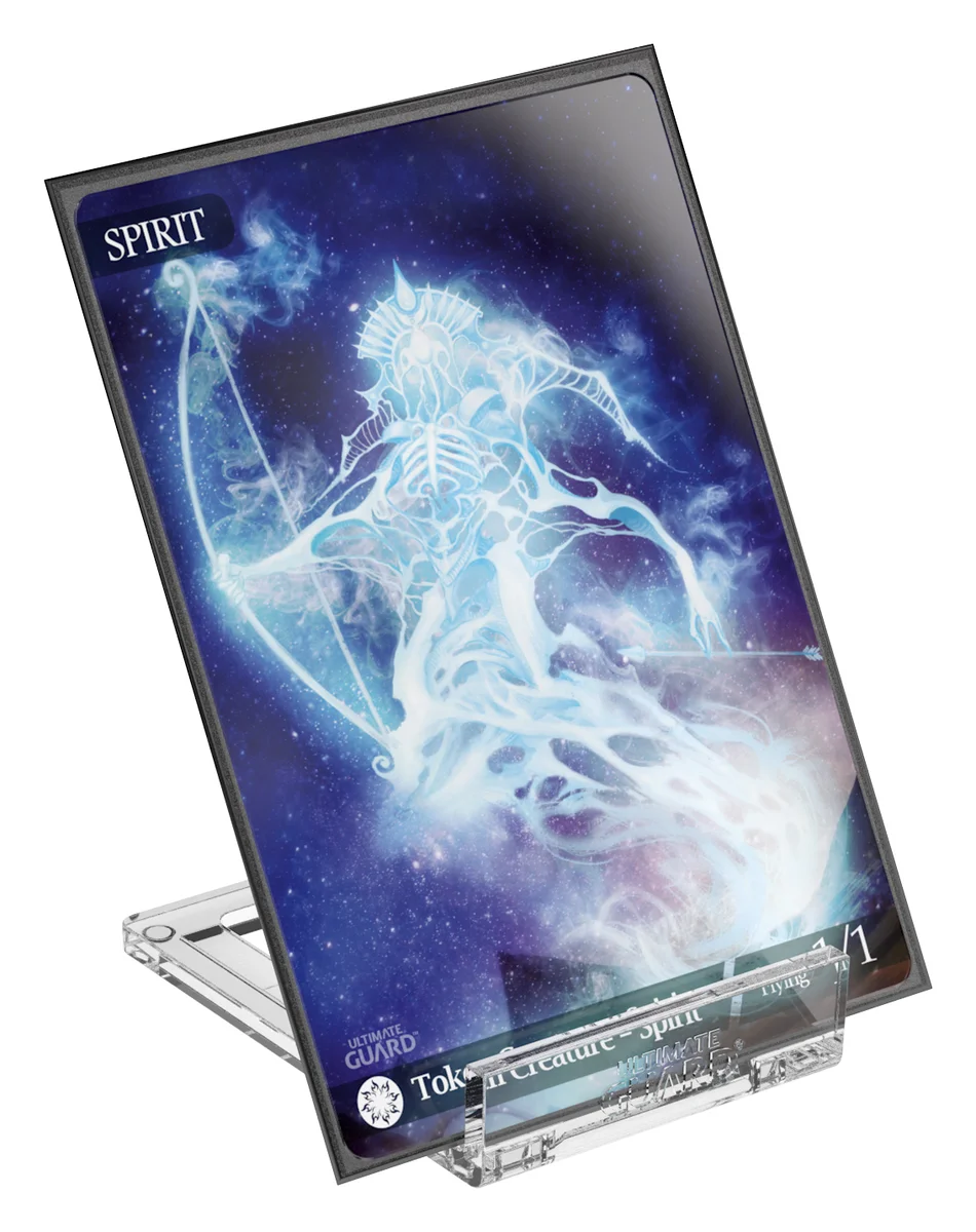 Our Slider Stands help you present the most precious pieces of your collection in an appealing way. They consist of two sturdy crystal-clear pieces to slide flexibly into various positions, making them universally compatible. Optimized to hold the Ultimate Guard Magnetic Card Cases in numerous sizes, they are almost invisible and grant an eye-catching display solution for your cards and cases.
