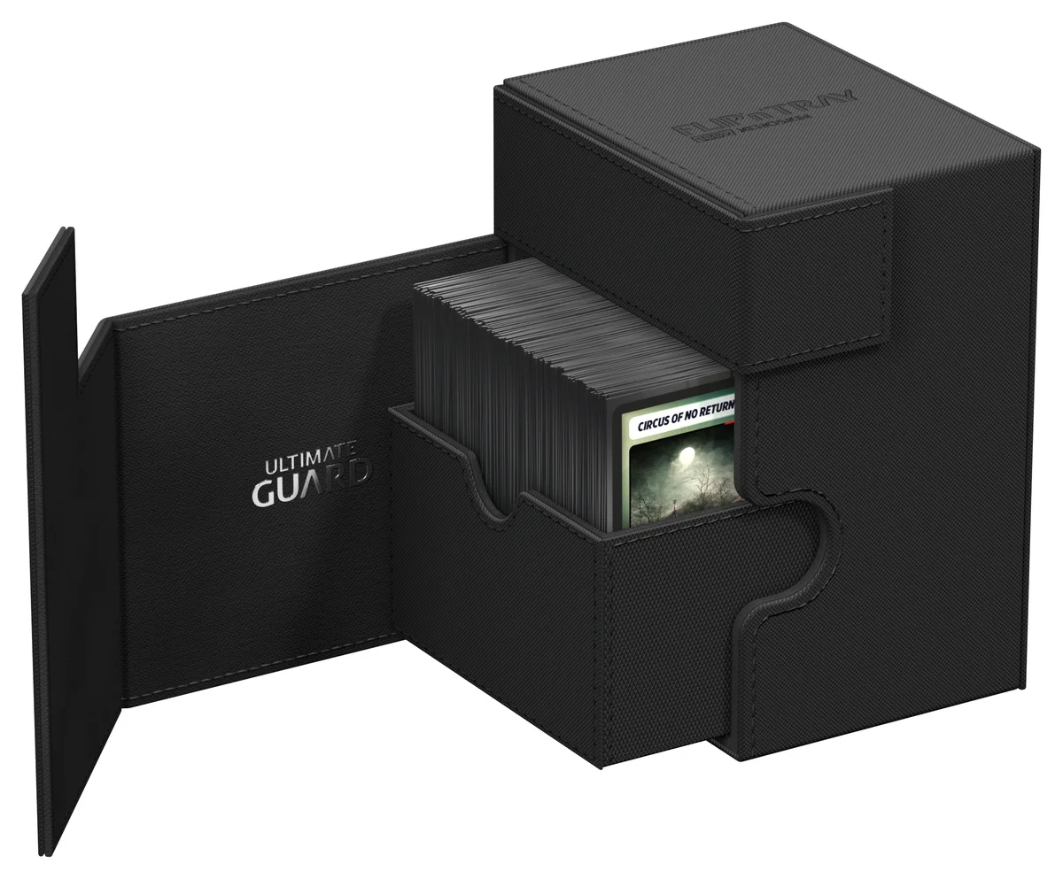 The latest version of Ultimate Guard's legendary Flip'n'Tray offers even more space: The Flip'n'Tray 133+ Xenoskin fits up to 133 double-sleeved cards, thanks to the integrated extra compartment for dice, the deck box is perfect for Commander/EDH decks and is the optimal companion for Magic: The Gathering players at Limited Events. But fans of other TCGs like Pokémon or Flesh and Blood will also love the spacious and practical deck box with our proven Xenoskin surface!