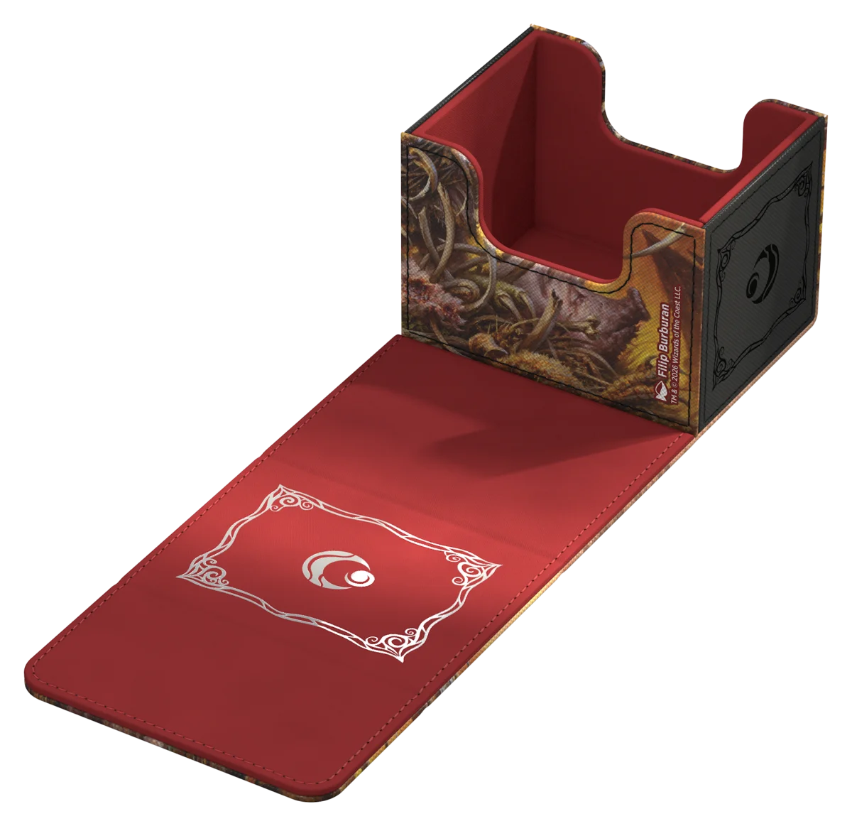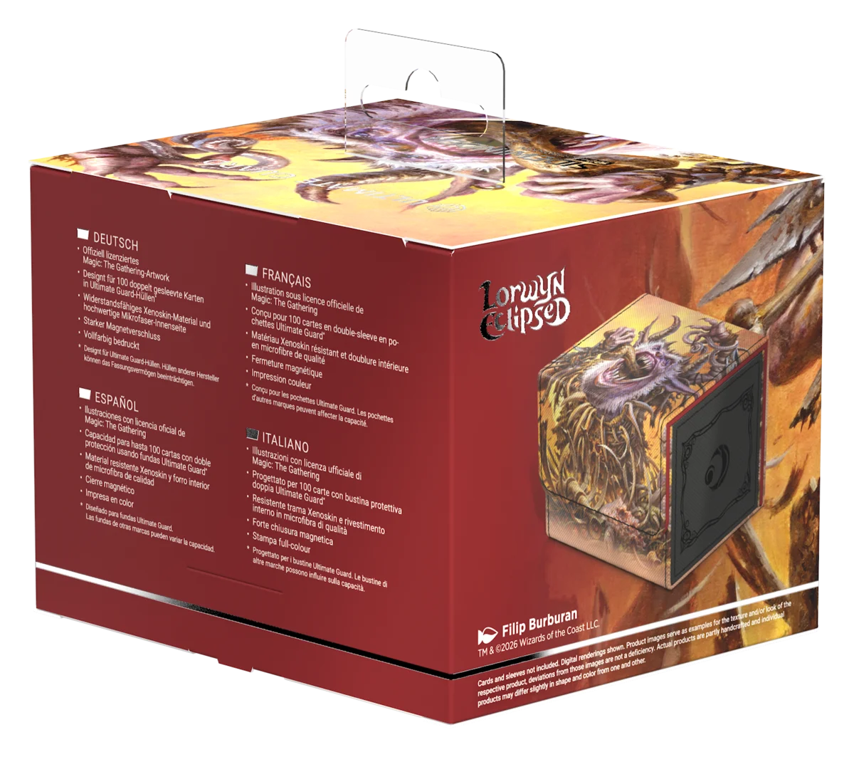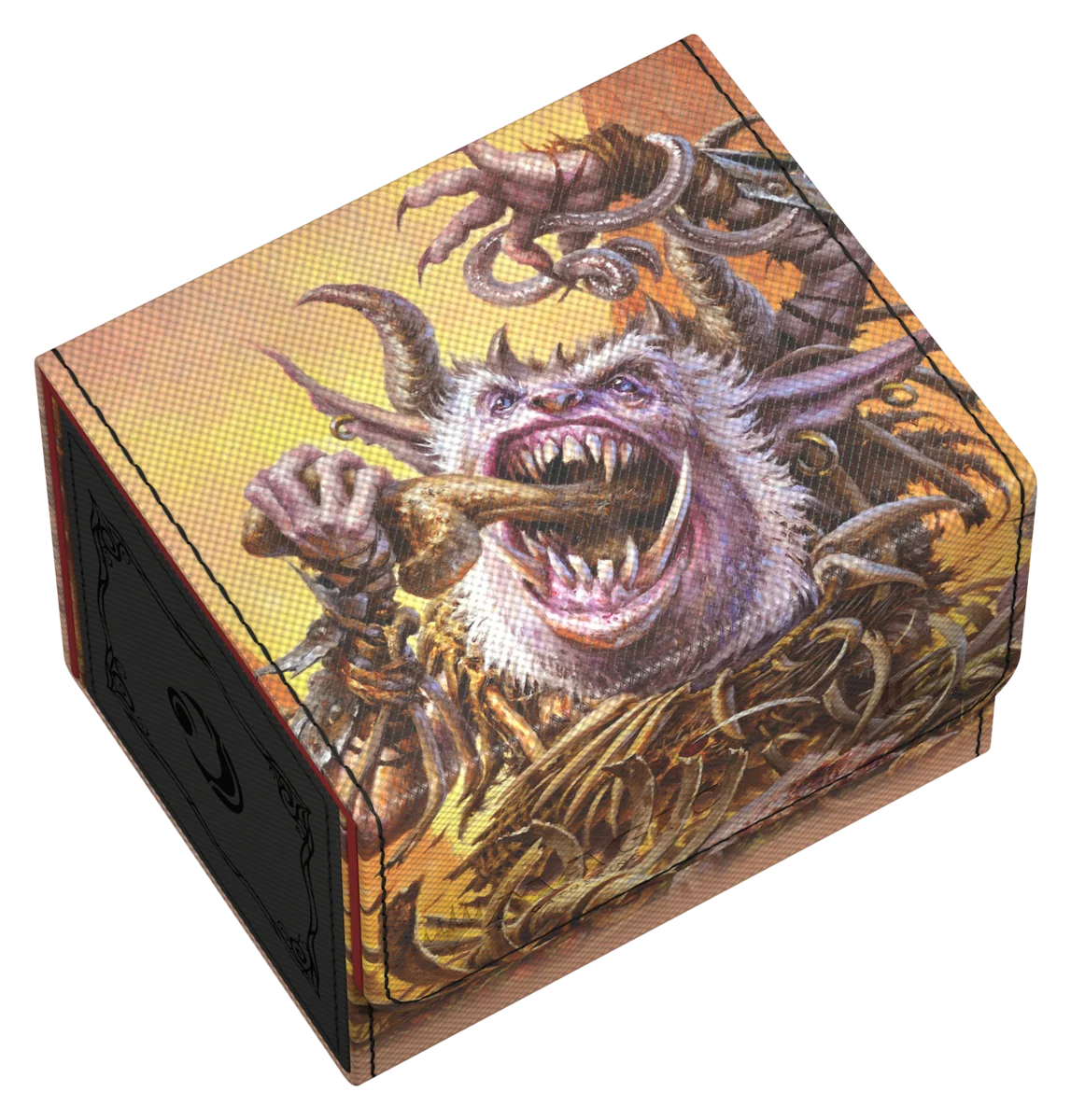 Il Sidewinder 100+ Xenoskin di Ultimate Guard è un deckbox premium per Magic: The Gathering che offre un'eccezionale protezione delle carte grazie alla resistente trama in Xenoskin, al rivestimento interno in microfibra e alla forte chiusura magnetica — il tutto garantendo un accesso facile e comodo alle carte contenute all'interno. Con spazio per 100 carte con doppia bustina protettiva Ultimate Guard* e stampato con artwork ufficiale dal set "Lorwyn Eclipsed" di Magic: The Gathering, il Sidewinder 100+ Xenoskin è il deckbox MTG perfetto per tutti i formati di Magic (Commander/EDH, Modern, Standard, ecc.). Progettato per essere abbinato alle box per la conservazione di massa Omnihive, Superhive e Smarthive di Ultimate Guard.