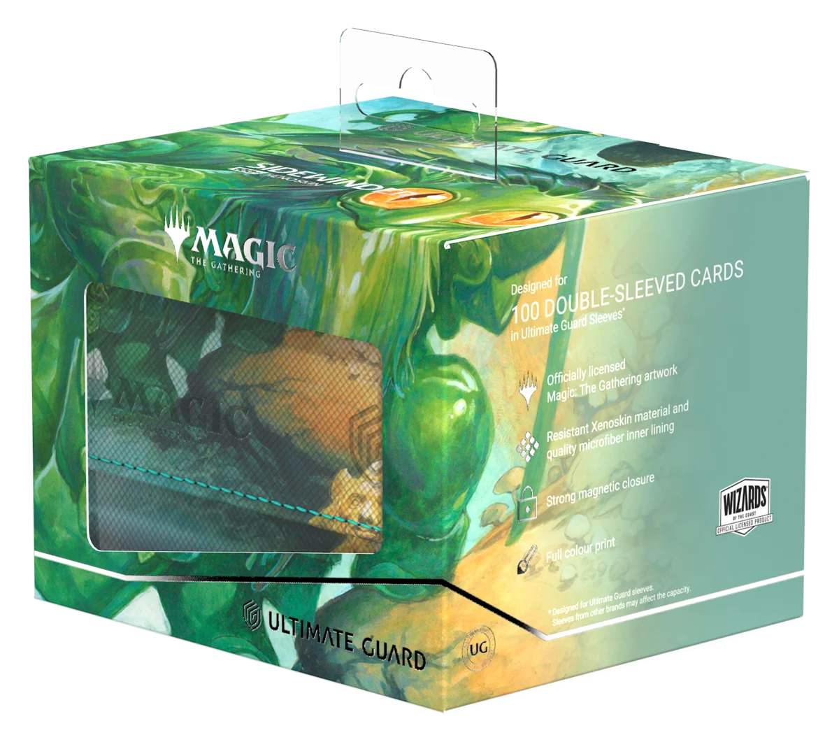 Il Sidewinder 100+ Xenoskin di Ultimate Guard è un deckbox premium per Magic: The Gathering che offre un'eccezionale protezione delle carte grazie alla resistente trama in Xenoskin, al rivestimento interno in microfibra e alla forte chiusura magnetica — il tutto garantendo un accesso facile e comodo alle carte contenute all'interno. Con spazio per 100 carte con doppia bustina protettiva Ultimate Guard* e stampato con artwork ufficiale dal set "Lorwyn Eclipsed" di Magic: The Gathering, il Sidewinder 100+ Xenoskin è il deckbox MTG perfetto per tutti i formati di Magic (Commander/EDH, Modern, Standard, ecc.). Progettato per essere abbinato alle box per la conservazione di massa Omnihive, Superhive e Smarthive di Ultimate Guard.