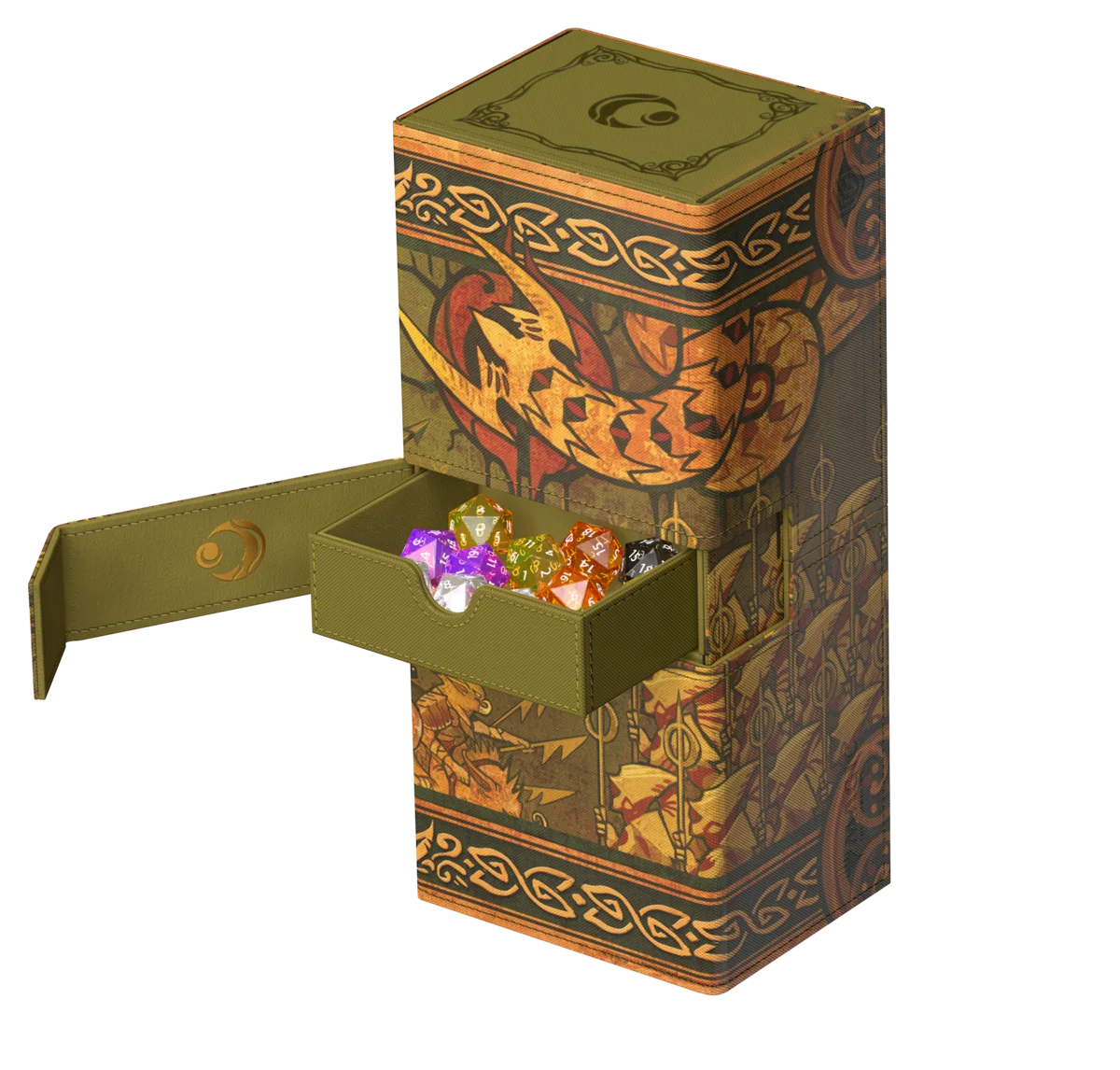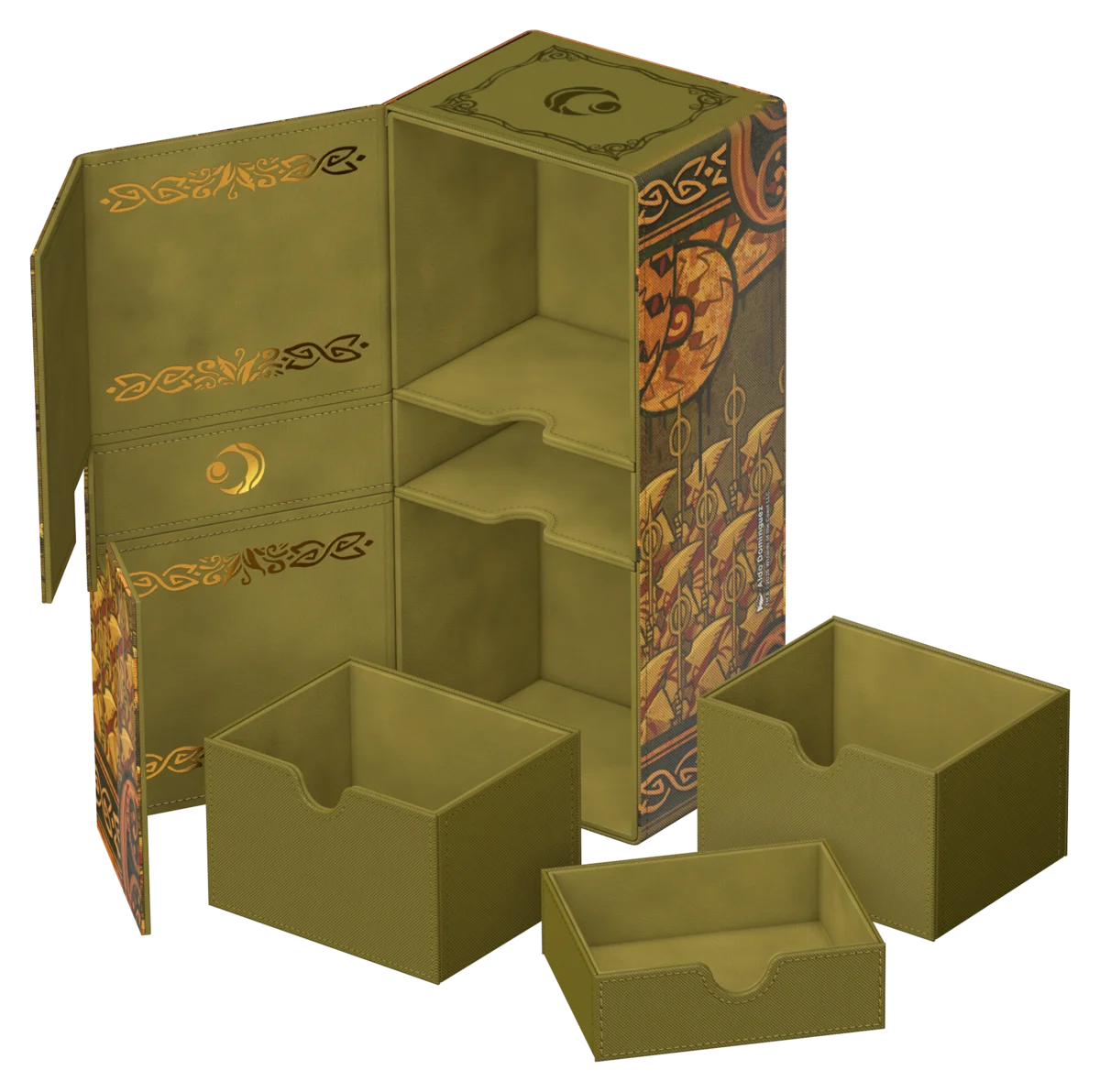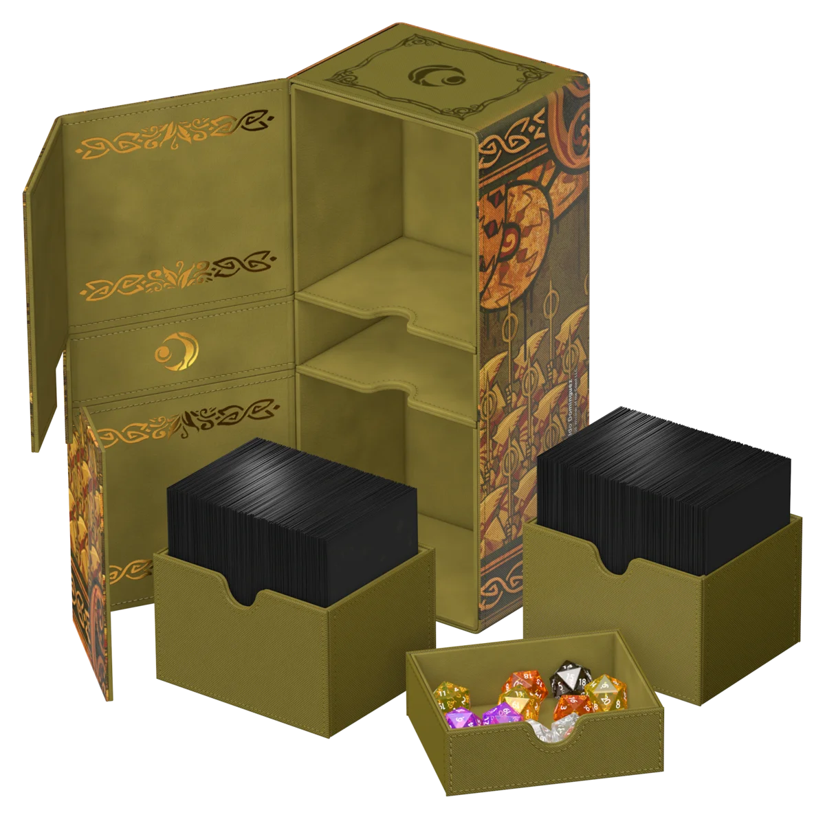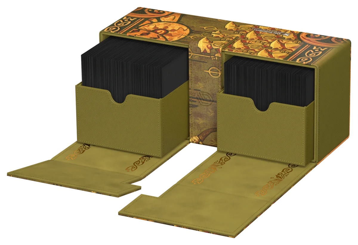 Il Twin Flip'n'Tray 266+ Xenoskin di Ultimate Guard è un deck box premium per MTG con due scomparti indipendenti, ciascuno per 133 carte con doppia bustina protettiva Ultimate Guard*, oltre a un vassoio rimovibile aggiuntivo per dadi e accessori. Perfetto per il formato Commander/EDH di Magic, il Twin Flip'n'Tray è decorato con artwork ufficialmente concessi in licenza dal set "Lorwyn Eclipsed" di Magic: The Gathering e offre spazio extra per ulteriori carte e pedine. Realizzato con la resistente trama Xenoskin, un rivestimento interno in microfibra di alta qualità e forti chiusure magnetiche, garantisce una protezione eccezionale delle carte. Progettato per essere combinato con altri prodotti Ultimate Guard, il Twin Flip'n'Tray può contenere due Boulder 100+ quando i vassoi per le carte vengono rimossi.