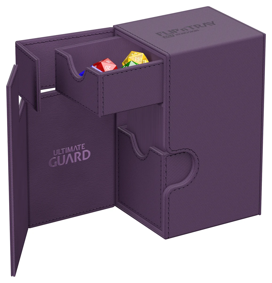 La quintessenza degli Ultimate Guard deck box: un design senza tempo con una chiusura magnetica farte, scomparto dedicato per carte e dadi per riporre in sicurezza il tuo mazzo e una superficie Xenoskin resistente ma liscia. Con spazio per 80 carte con doppia bustina protettiva o 100 carte in bustina singola di dimensioni standard, il Flip'n'Tray 80+ ha tutto.